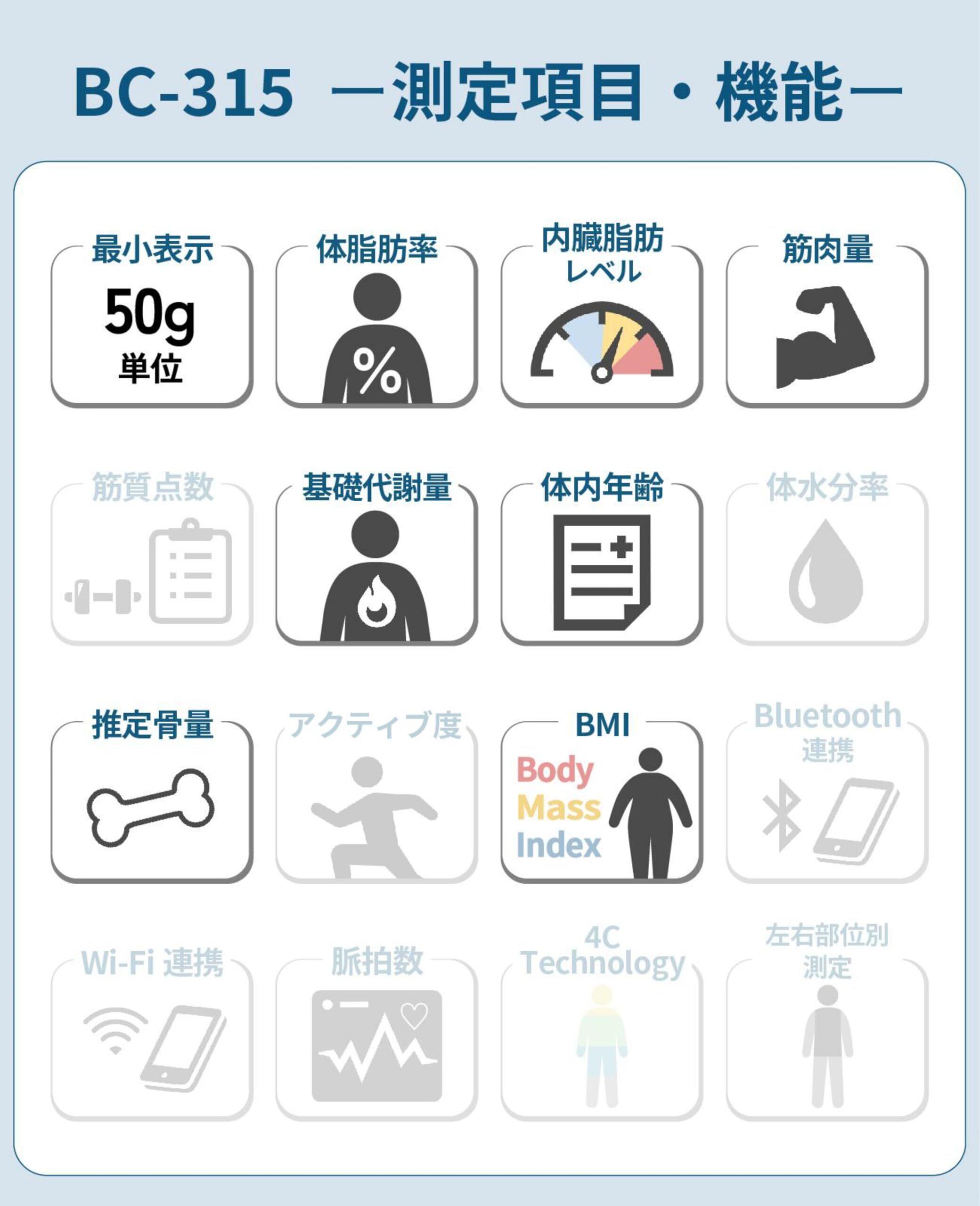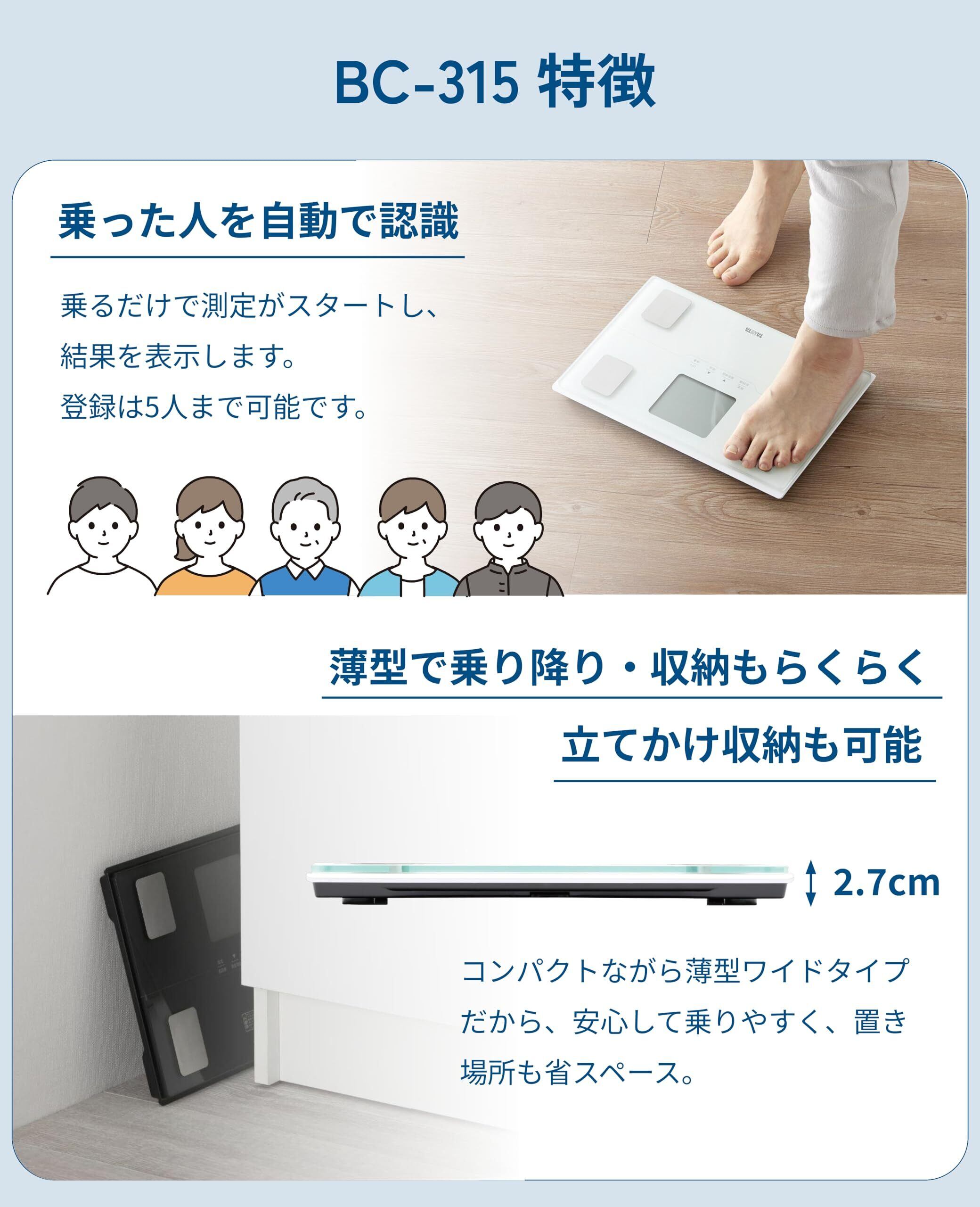 タニタ 体重計 体組成計体脂肪率/内臓脂肪レベル/筋肉量/基礎代謝量/体内年齢/推定骨量/BMI/立掛け収納OK/乗るピタ ヘルスメーター BC-315 ホワイト