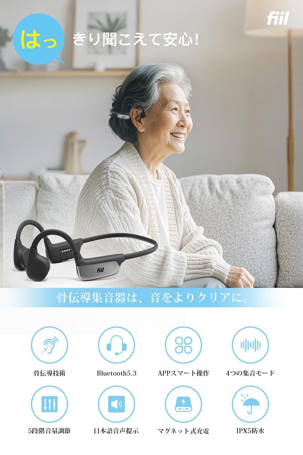 FIIL 集音器 骨伝導 高齢者 しゅうおんき BT5.3 耳に入る必要はない ノイズ低減 マグネット式充電 5段階音量調節 4種類モード 電話/音楽対応 紛失対策 両耳用 IPX5防水 軽量 敬老の日 母の日 父の日 日本語説明書付き (ブラック)