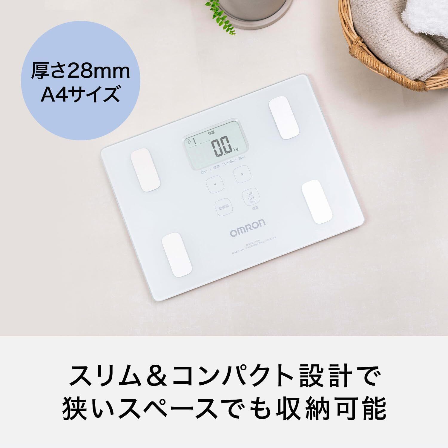 オムロン 体重 体組成計 カラダスキャン ホワイト KRD-103-W 自動認識 乗るだけで測定開始 A4サイズのコンパクト設計
