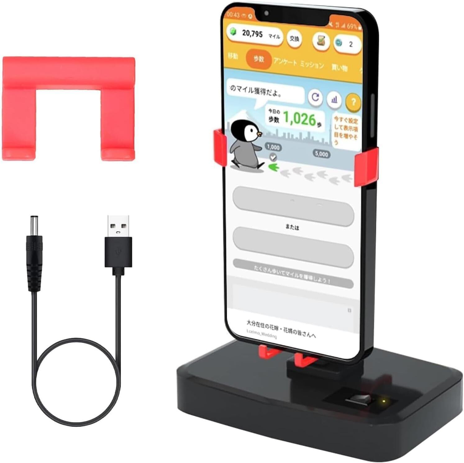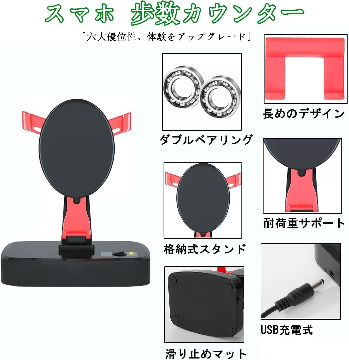 スマホ振り子スマホスインガーラー USB充電式タイプ 横揺れ 歩数稼ぎ 変速 自動孵化装置 自動歩行 回転スイング ドラクエ ウォーク/静音 耐磁保護 滑り止め 組み立て不要 使用簡単 スマホ&iPhone&Android対応 スタンド