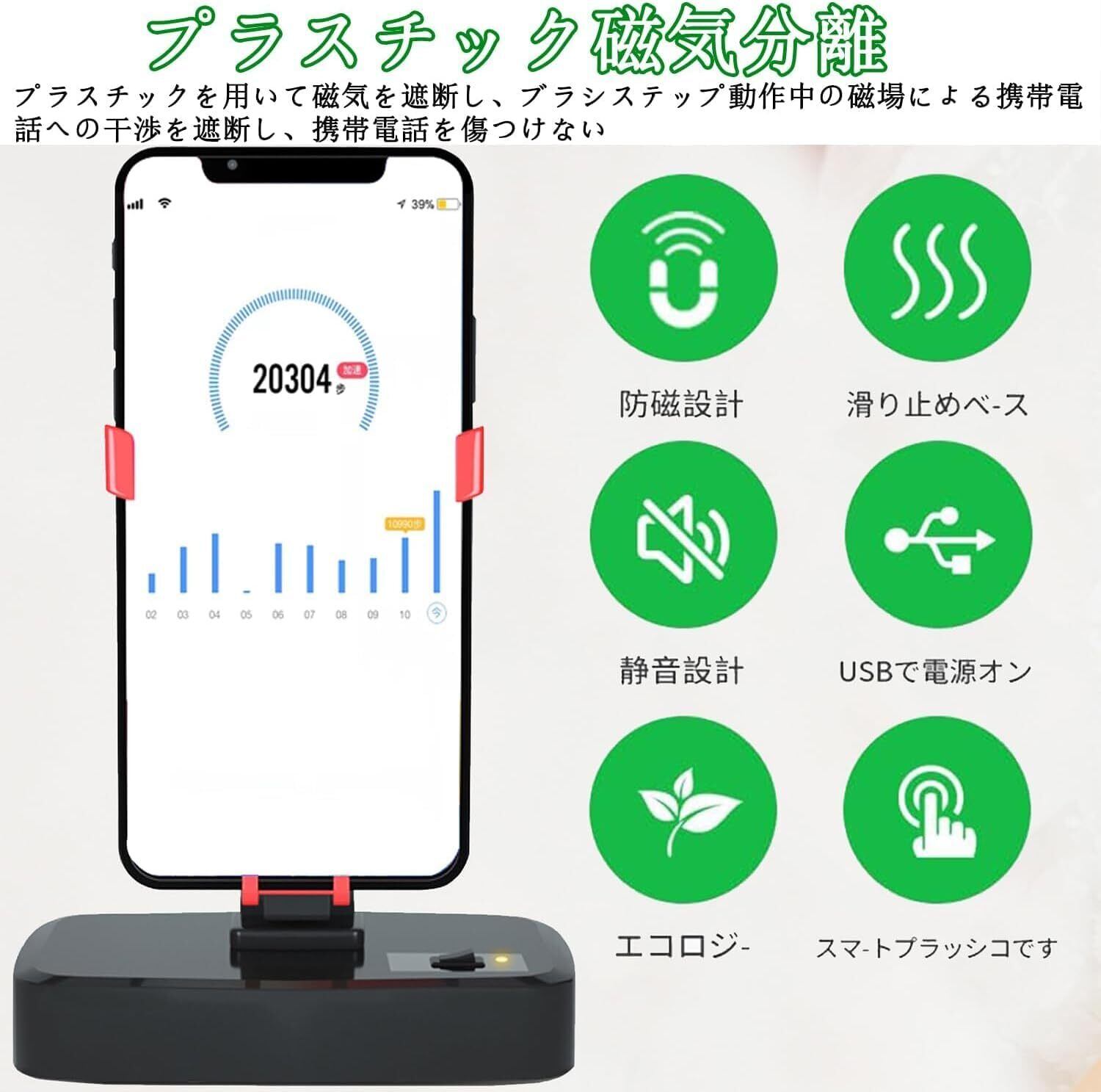 スマホ 振り子 電池式&耐磁保護:スマホ振り子充電式タイプ、内置1800mah电池、2時間の充電で15日間連続使用可能。使い始めの時は、電源を入れた後、携帯電話をフレームに置き、少し押すとスイングし始めます。実行中のプログラムで最初にランク付けしましょう。PVC防磁材をアップグレードし、ブラシステップ動作中の磁場による携帯電話への干渉を遮断し、携帯電話を傷つけない。耐久性も高める。