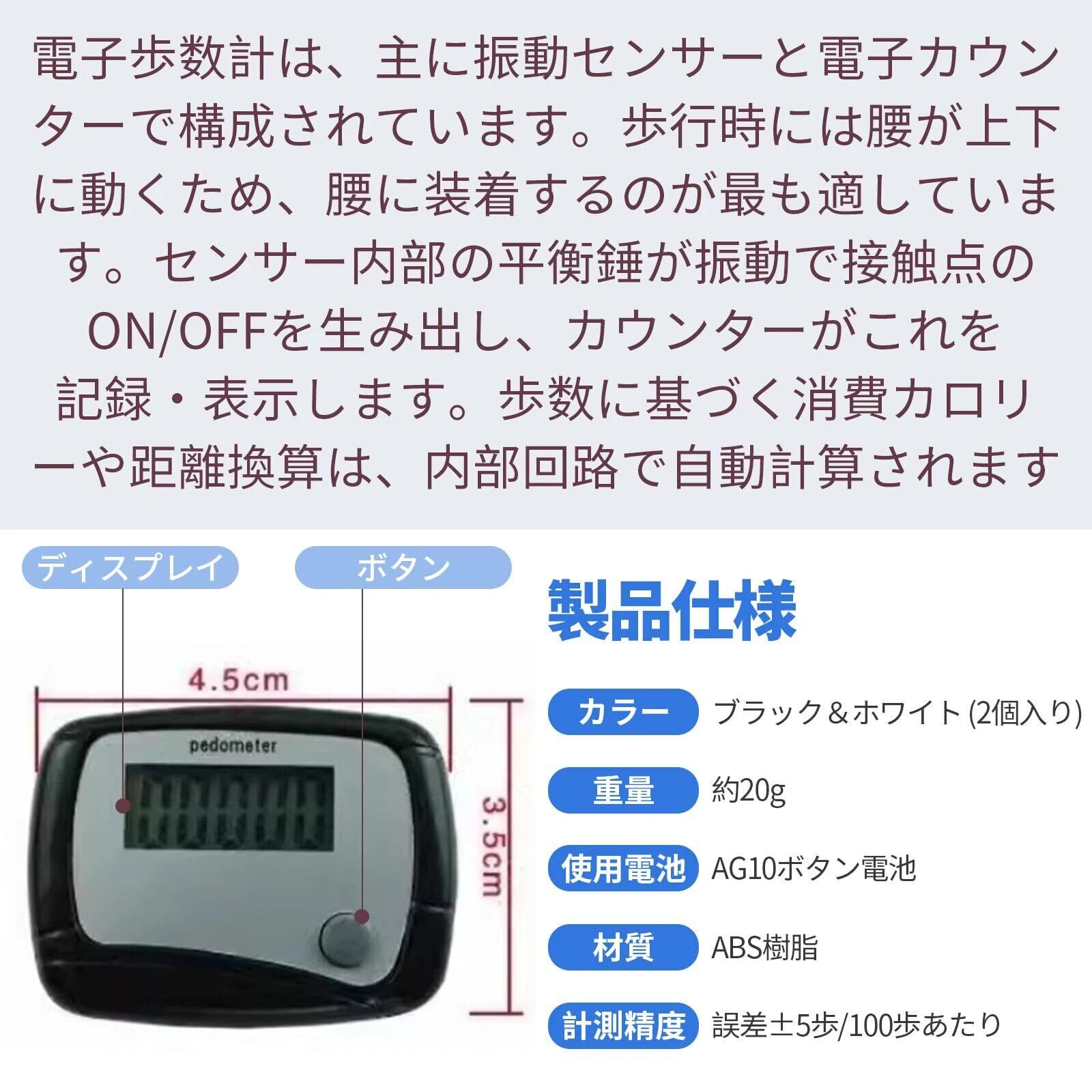 歩数計 万歩計 クリップ付き 黒と白 デジタルLCD歩数計 歩数追跡 時計 小型 見やすい 携帯便利 防塵 防湿 運動 健康管理 エクササイズ ダイエット 高齢者向け 男女兼用