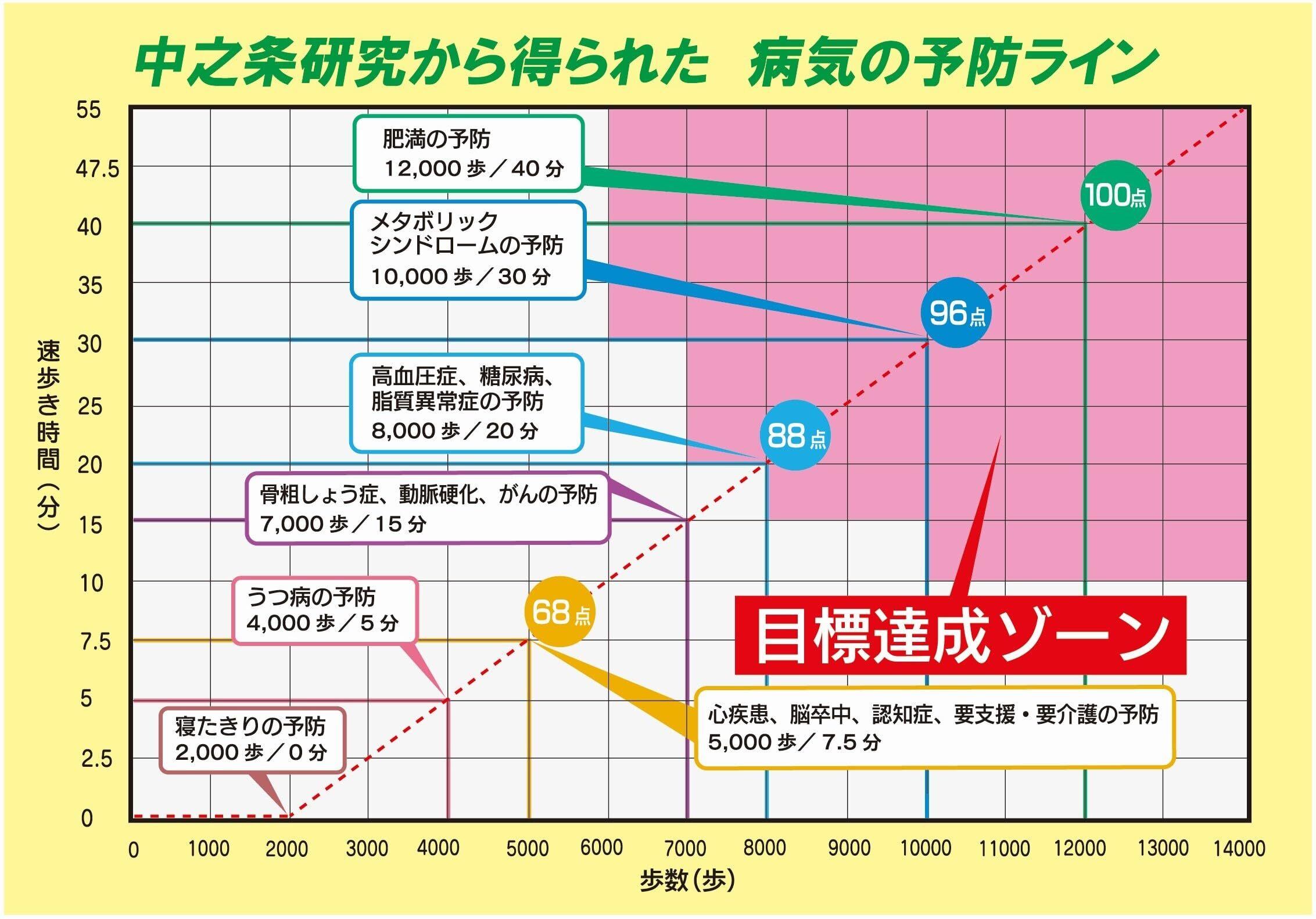 ・個人の年齢や体力に応じて、速歩き(中強度の歩行)レベル(3,4, 5METs)が設定可能。