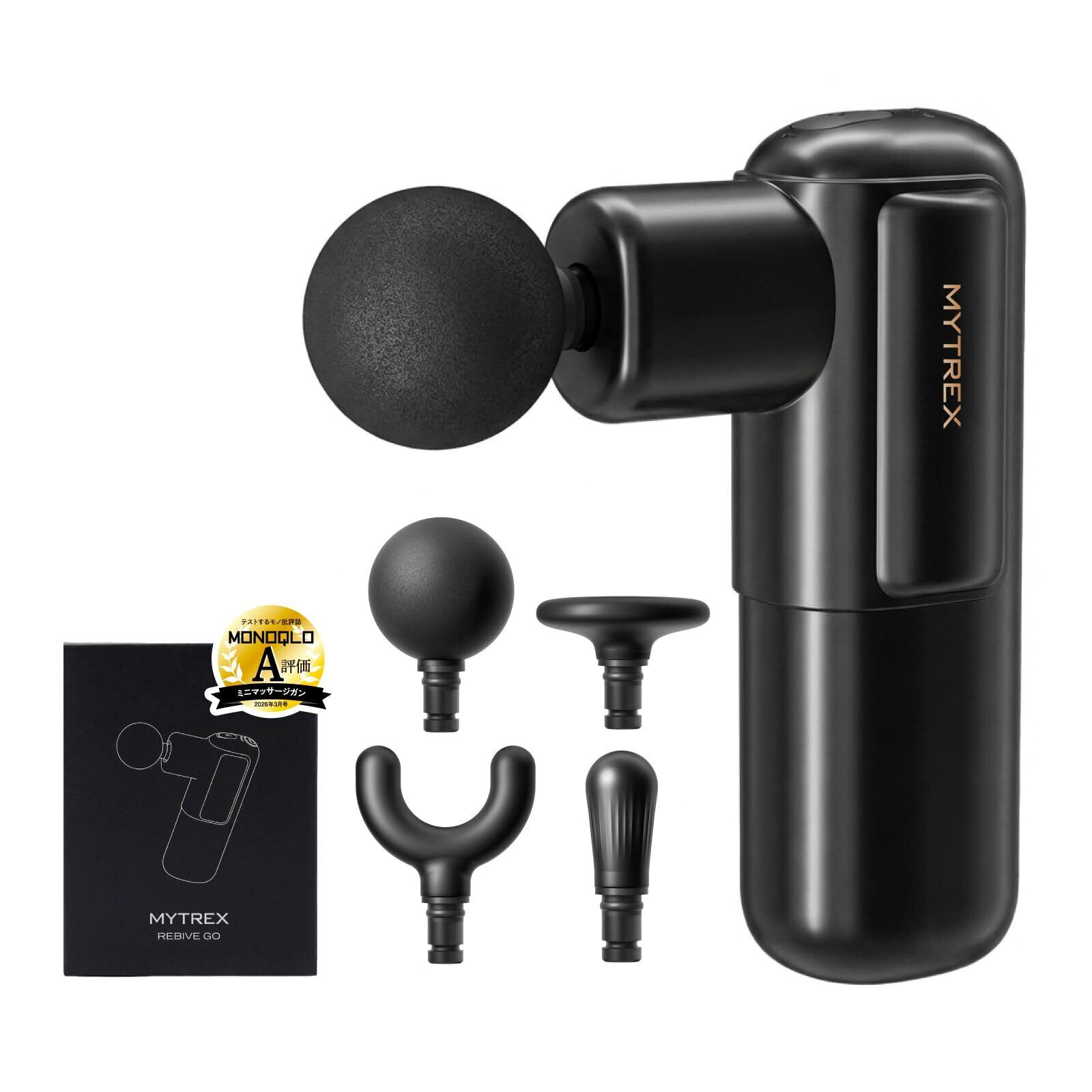MYTREX REBIVE GO 筋膜リリースガン ハンディガン ボディケア フェイスケア アタッチメント4種類付き 強力振動 肩 腰 足 小型 軽量 約205g ギフト プレゼント マイトレックス リバイブゴー MT-RBG-25B(ブラック)