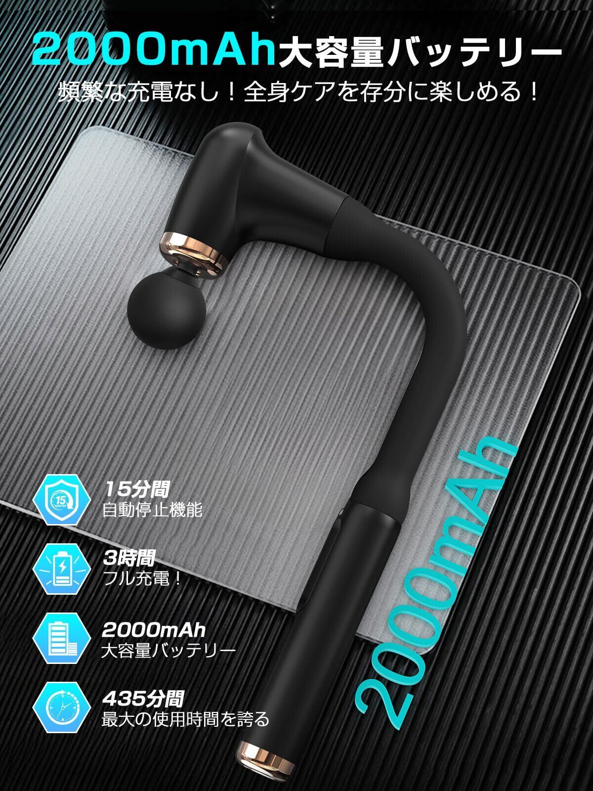 【数値表示バッテリー残量・Type-C急速充電】液晶タッチスクリーンにより、バッテリー残量と振動強度を一目で確認できます。筋膜 リリースガンの電源オン・オフや強度段階の調節は、2つのボタンで簡単に制御できます。さらに、ハイエンドな液晶ディスプレイでレベル表示やバッテリ残量も確認可能。2000mAhバッテリー内蔵で、毎日10分の使用であれば、1段階で最大60日間連続使用できます。Type-C充電式なので、充電器、パソコン、移動バッテリーなどから充電が可能です。仕事やスポーツ、家事の後でも、いつでもどこでも手軽に使用できます。ただし、電池の残量や充電環境、使用状況によって、充電時間や動作時間は変わることがあります。日々の生活を頑張るあなたに、自分専用のリラックスタイムを。自分へのご褒美としてお使いください。