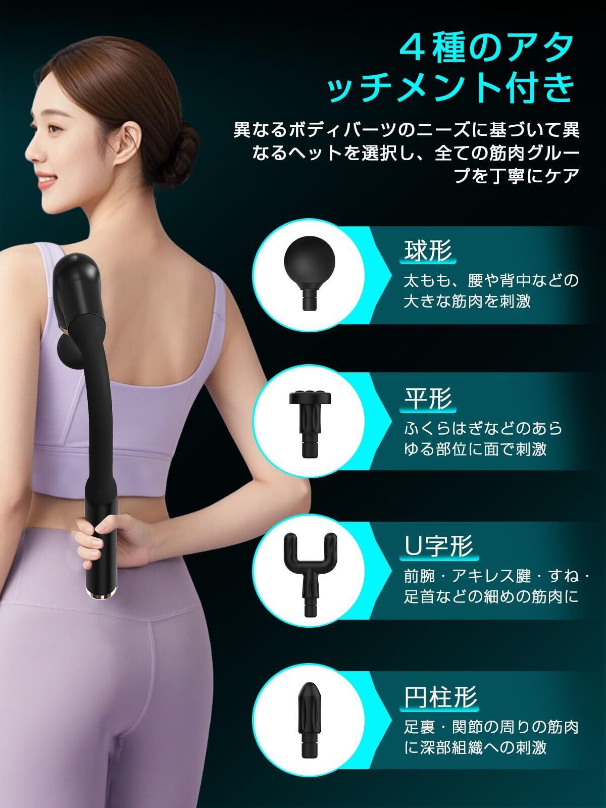 【4種類アタッチメント付き・超静音設計】リリースガンには、球形、U形、弾丸形、平形の4種類のアタッチメントが用意されており、首から足まであらゆる部位に使い分け、より高い効果を実現します。また、ミュートチップを搭載しており、動作音が45dB未満なので、早朝や夜間など、時間を気にせず使うことができます。さらに、双チュアベアリングを採用し、手振れを抑えて安定した使用が可能です。仕事中や運動中でも全くストレスなく使用できます。きんまくリリースの音が大きすぎて他人に迷惑をかけることを心配する必要はありません。洗練されたデザインと実用性の高さは、友人、上司、親戚、両親、そして高齢者にも喜ばれる理想的なギフトとなるでしょう。万が一、製品には不具合があったら、までご連絡ください。アカウントサービス内の「アカウントサービス」→「注文履歴」→「販売元」→「質問する」
