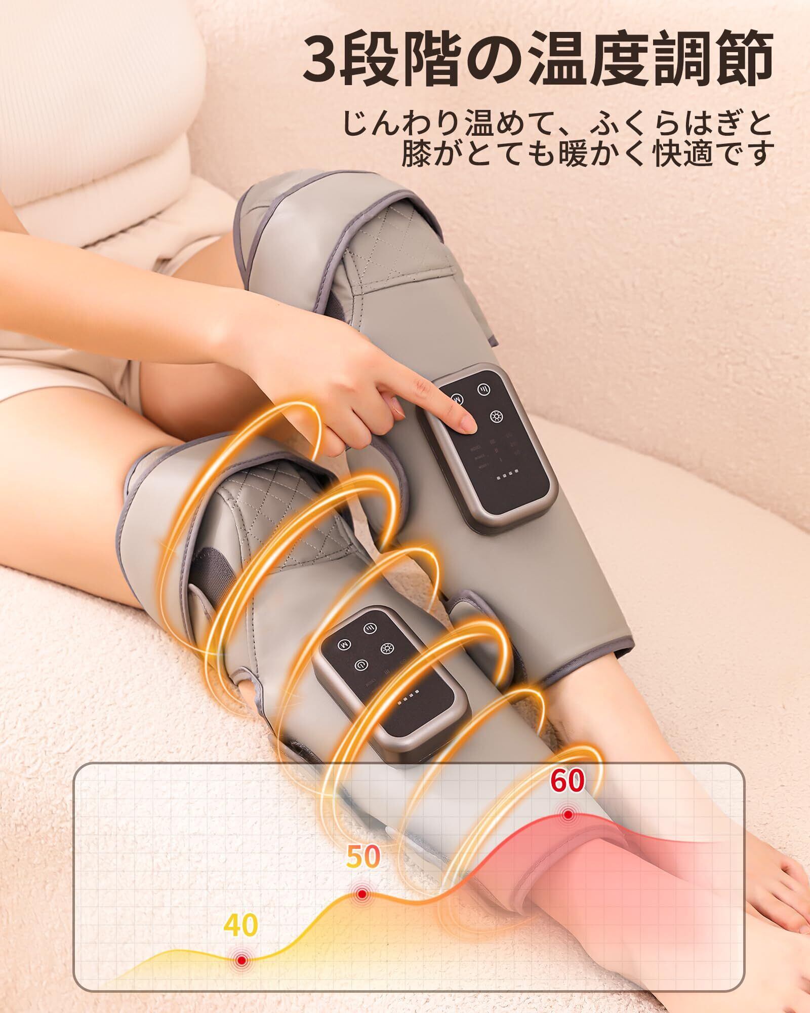 ふくらはぎケア 膝 エアーレッグリラックス 空気圧 温熱 ふくらはぎリラックス USB充電式 3モード 3段階強度 3段階温度 操作簡単 サイズ幅調整可 家庭用 男女兼用 誕生日 クリスマス プレゼント 敬老日 ギフト 母の日 父の日 日本語取扱説明書 (2個セット)