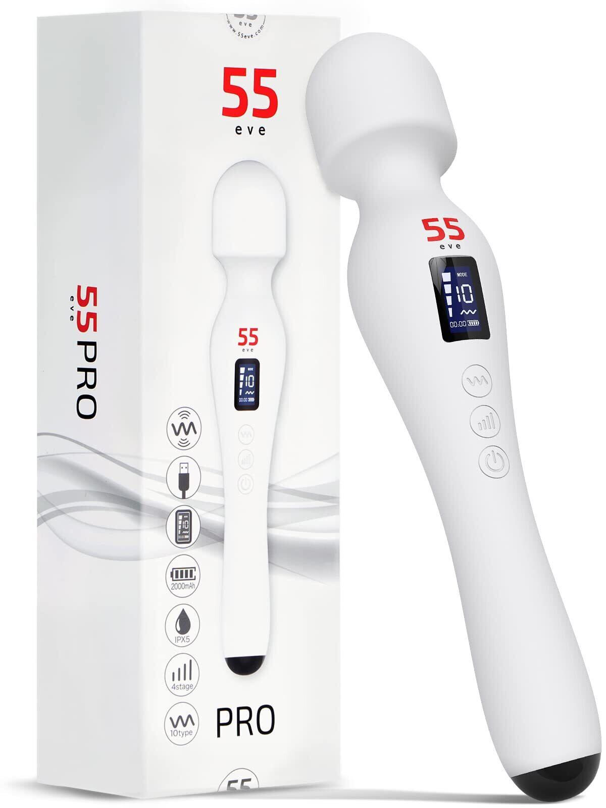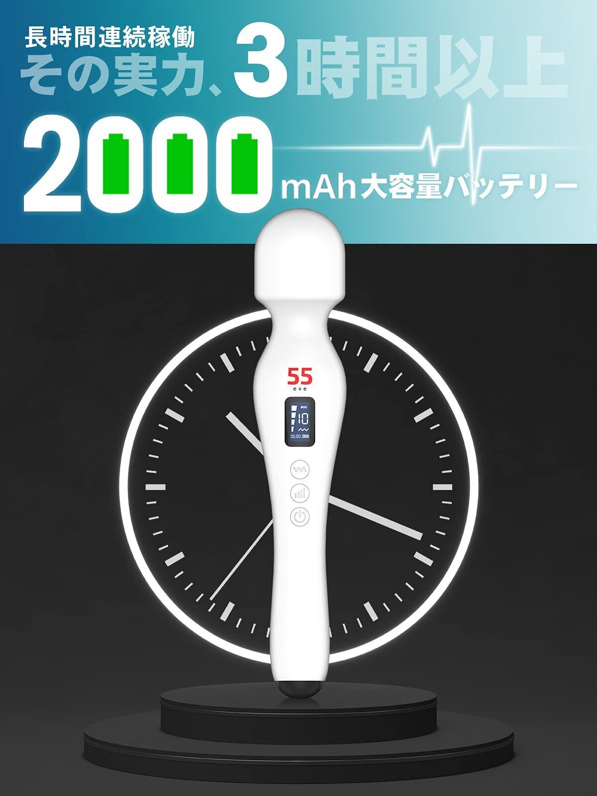 55evePRO コードレス最強クラス17,000rpm 液晶搭載プロスペック仕様 日本ブランド 4×10種振動 防水 シリコン素材 White