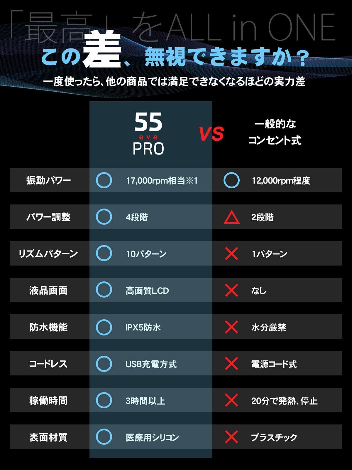 【 日本メーカーの安心 】 女性開発チームが女性のために、この55evePROを開発しました。末永く愛用いただけるよう180日のメーカーが付帯され、万が一の故障等に完全対応しております。
