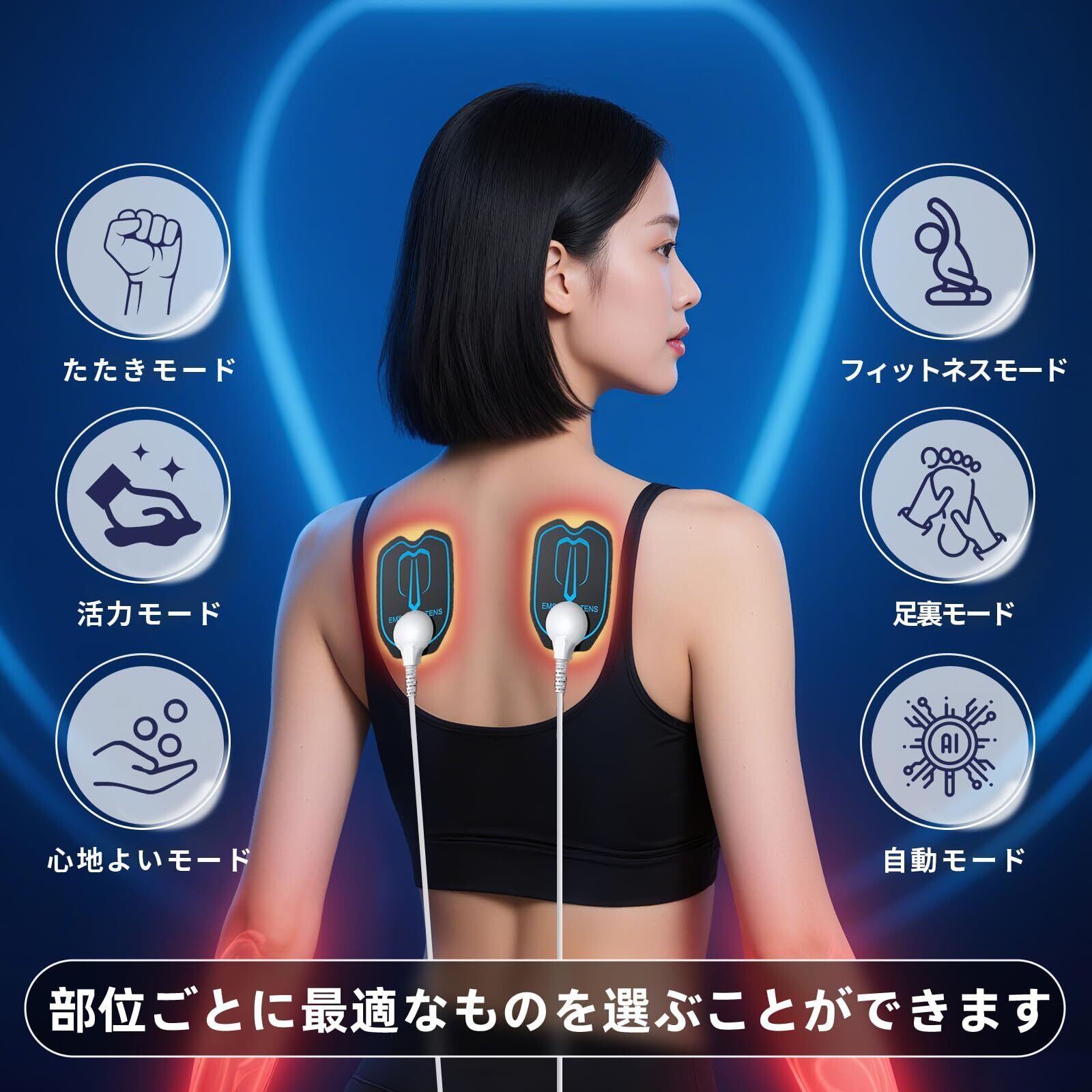 優れた機能性:9種類のモードがあり、30段階の強度調節が可能。A/Bデュアルチャネル仕様で、同時に2つまたは4つのパッドを使用できます。個人使用だけでなく、家族とも一緒に使用できます。※最初の使用では、強度をレベル1から始め、慣れてから徐々に強度を上げてください。