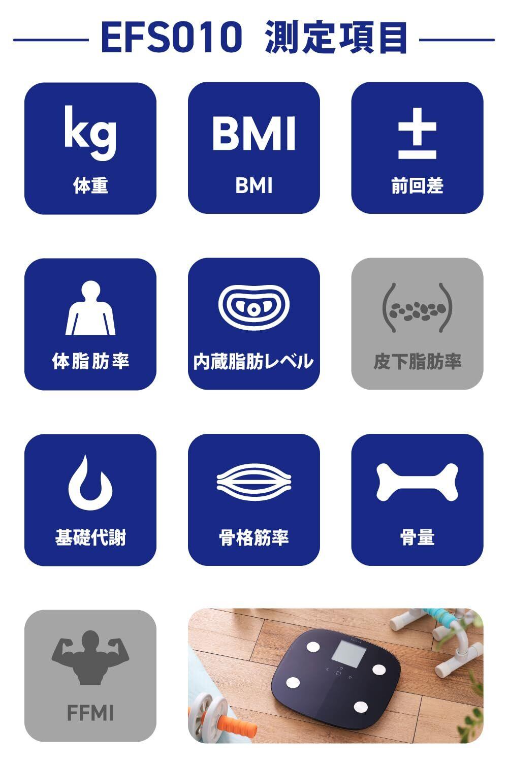 エレコム 体組成計 体重計 50g単位 バックライト付 8項目 自動認識機能 ブラック EFS010BK
