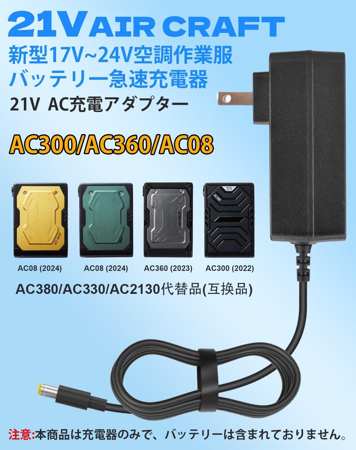 空調作業服 充電器 21V 対応BURTLE バートル 充電器 burtle AC380 AC330 AC2130 の同等互換品 エアクラフト AC300 AC360 AC08 バッテリー 対応 PSE技術基準適合 急速充電器 ACアダプター 17V~24Vバッテリー対応 空調作業服バッテリー充電器 急速充電器 24か月付