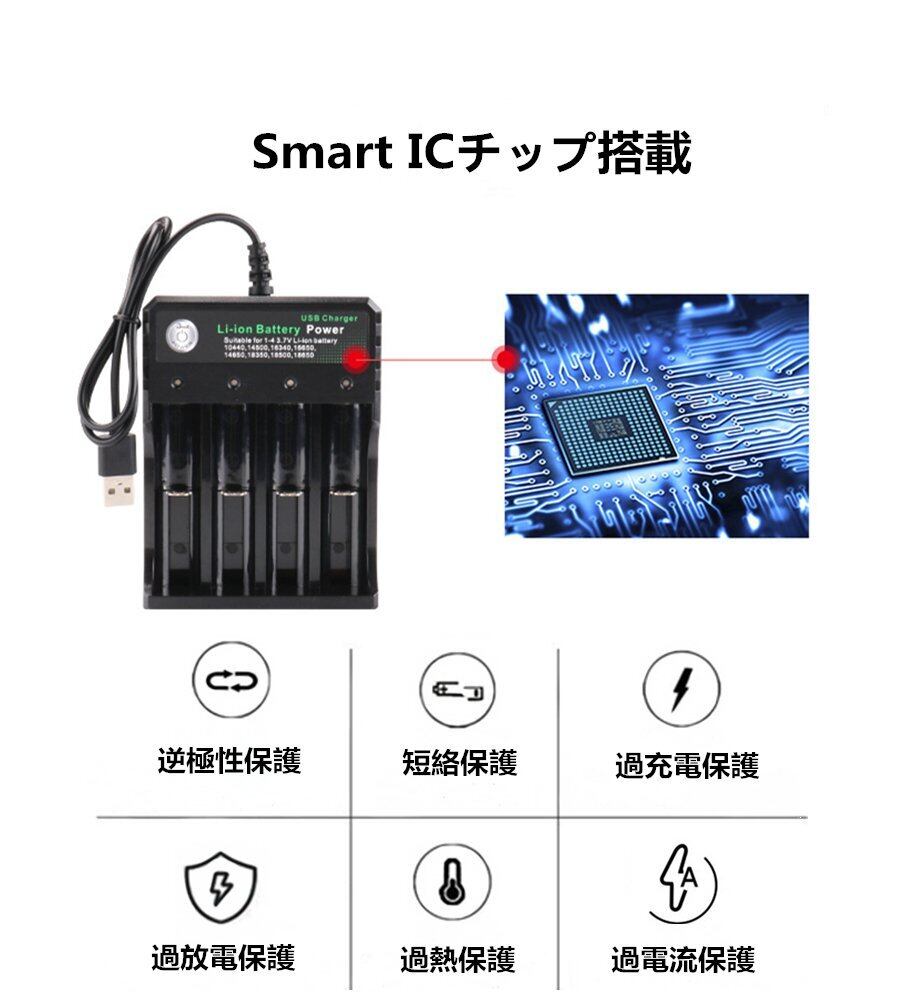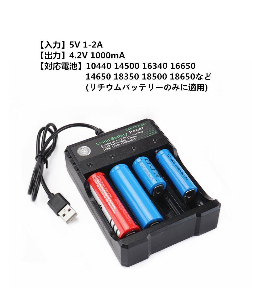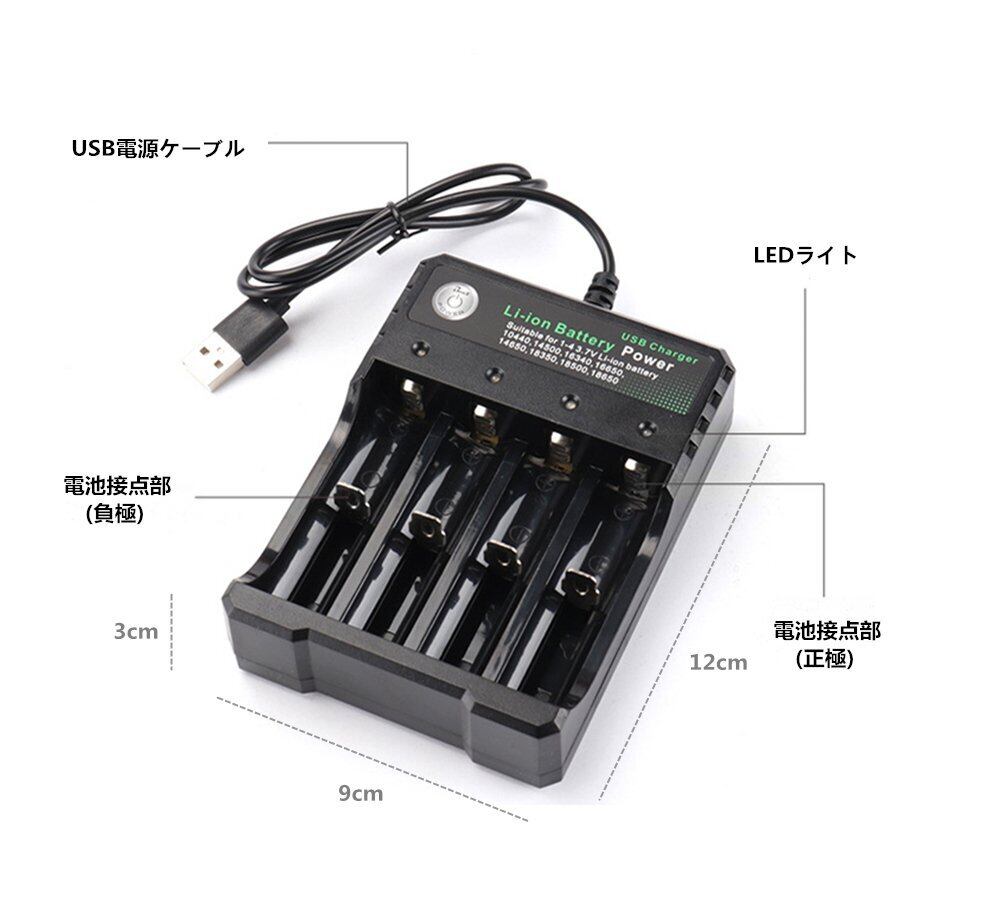 SHEAWA 電池充電器 リチウムバッテリー充電器 18650 USB充電器 4本同時に充電 リチウムイオン電池適用