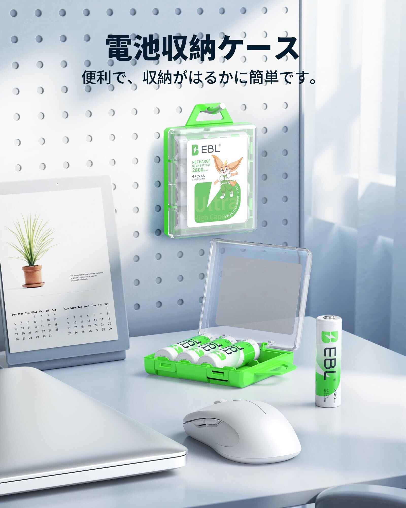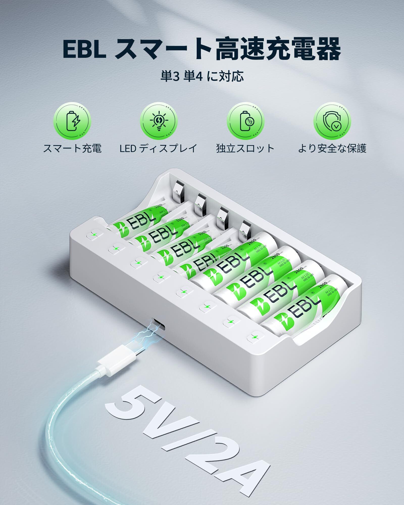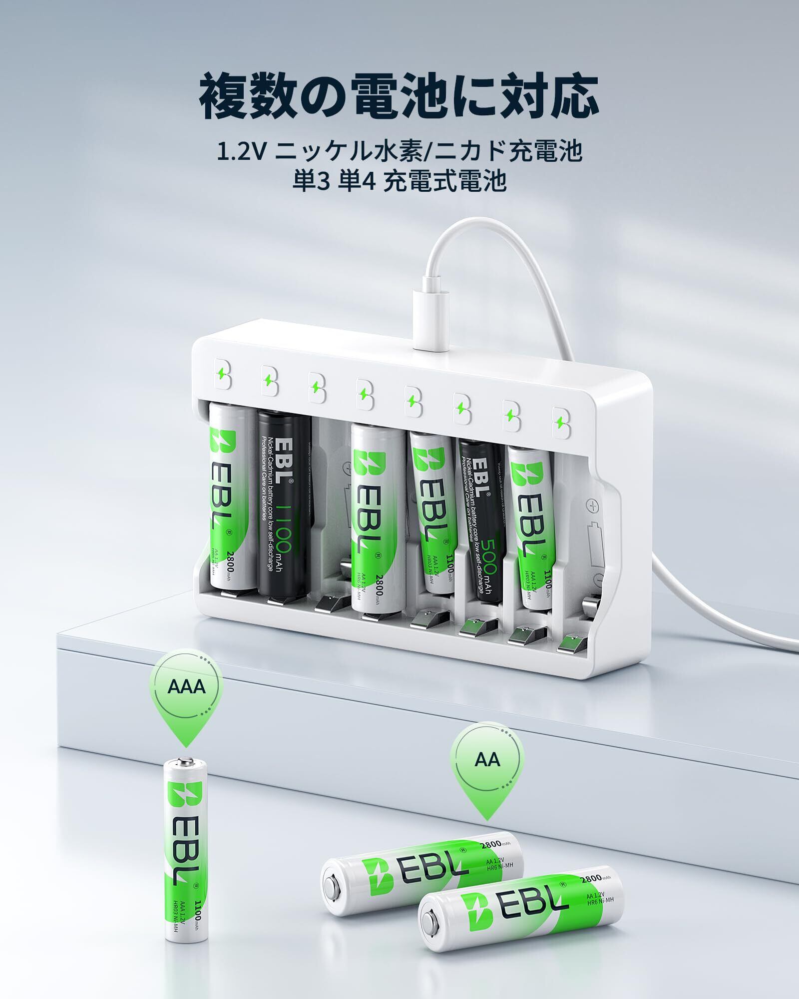 EBL 単3形充電池充電器セット 8スロット充電器+単3電池(2800mAh*8)セット 単三単四ニッケル水素/ニカド充電池に対応 スロットカーバッテリ- ミニ四駆 充電器 単3電池 充電式電池・充電器パック