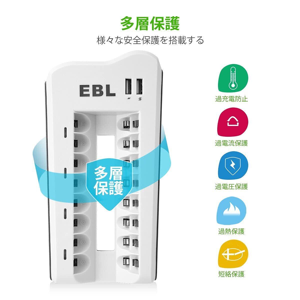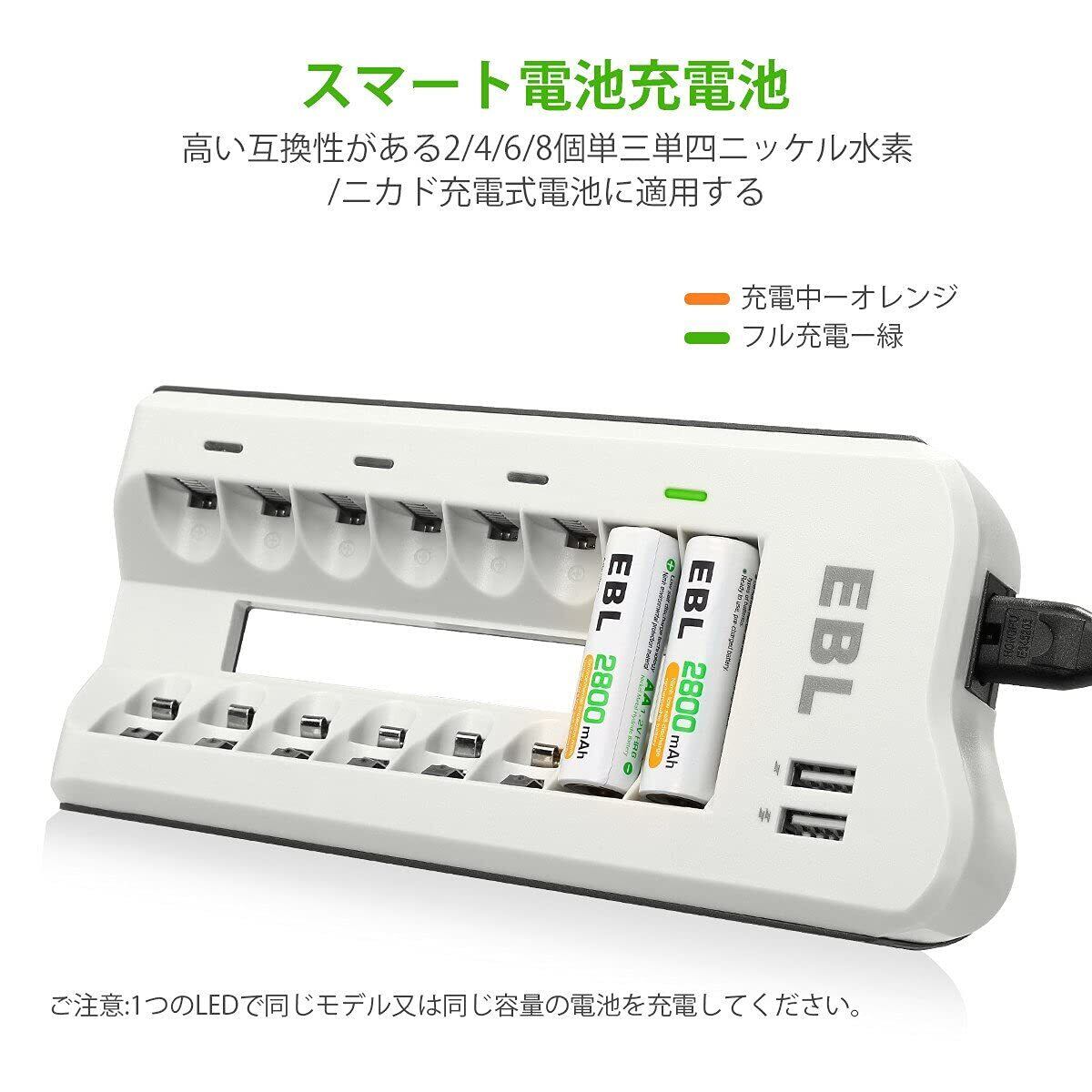 EBL 単3充電池充電器セット 8スロット充電器+単三充電池(2800mAh*8)セット 単3/単4電池 充電式 ニッケル水素/ニカド充電池に対応