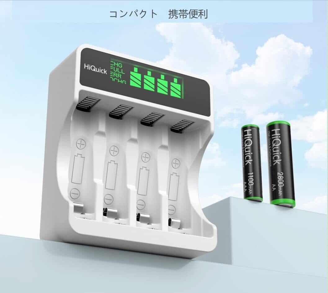 HiQuick 充電池 単3 充電器セット 単4付き 充電池充電器セット(4本単三+4本単四) LCD付き ニッケル水素、ニカドに対応 単4 充電器