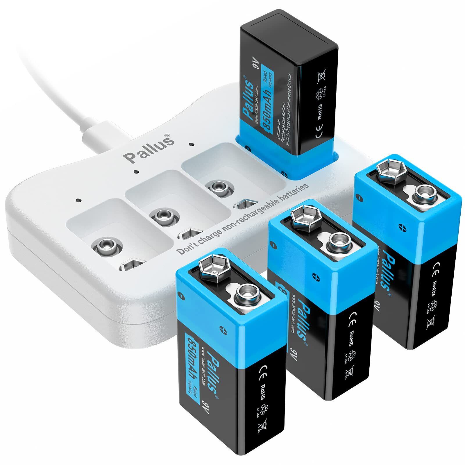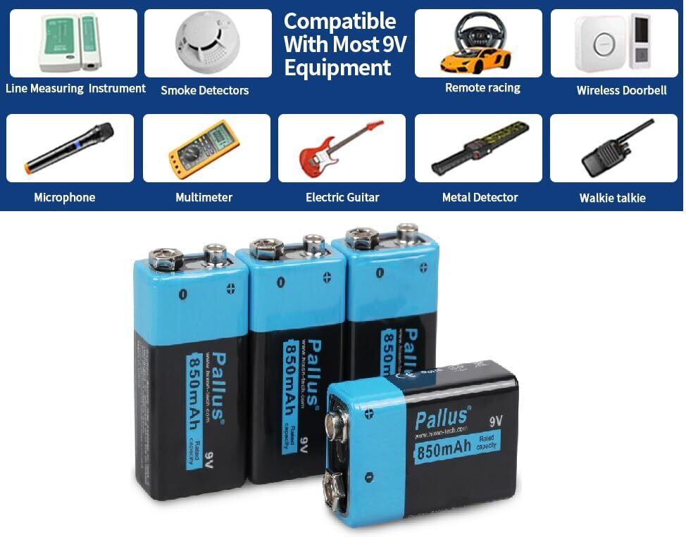 4 つの 9V 充電式電池、1000 回以上の充電サイクル、使い捨てアルカリ電池よりも経済的かつ効率的で、頻繁に電池を交換する必要はありません。