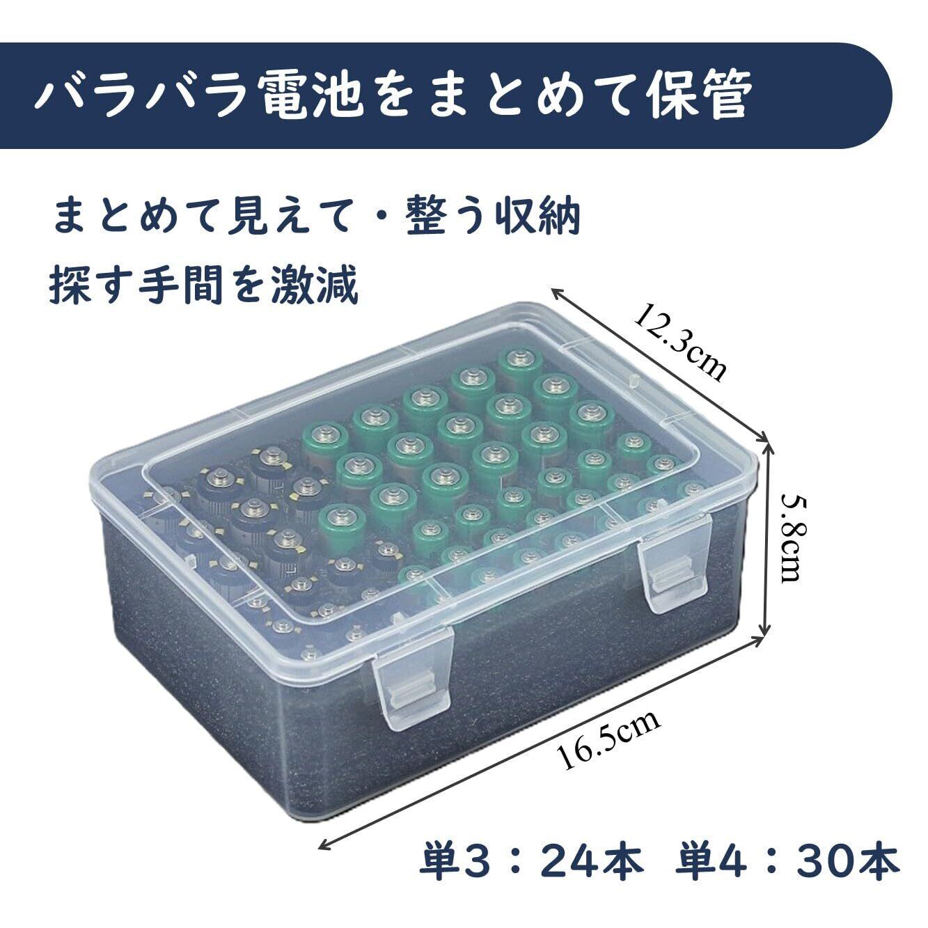 電池ケース 収納ボックス 単3 24本 / 単4 30本 電池 大容量 透明ケース 整理収納 防災グッズ | (電池は付属しません) ブラック