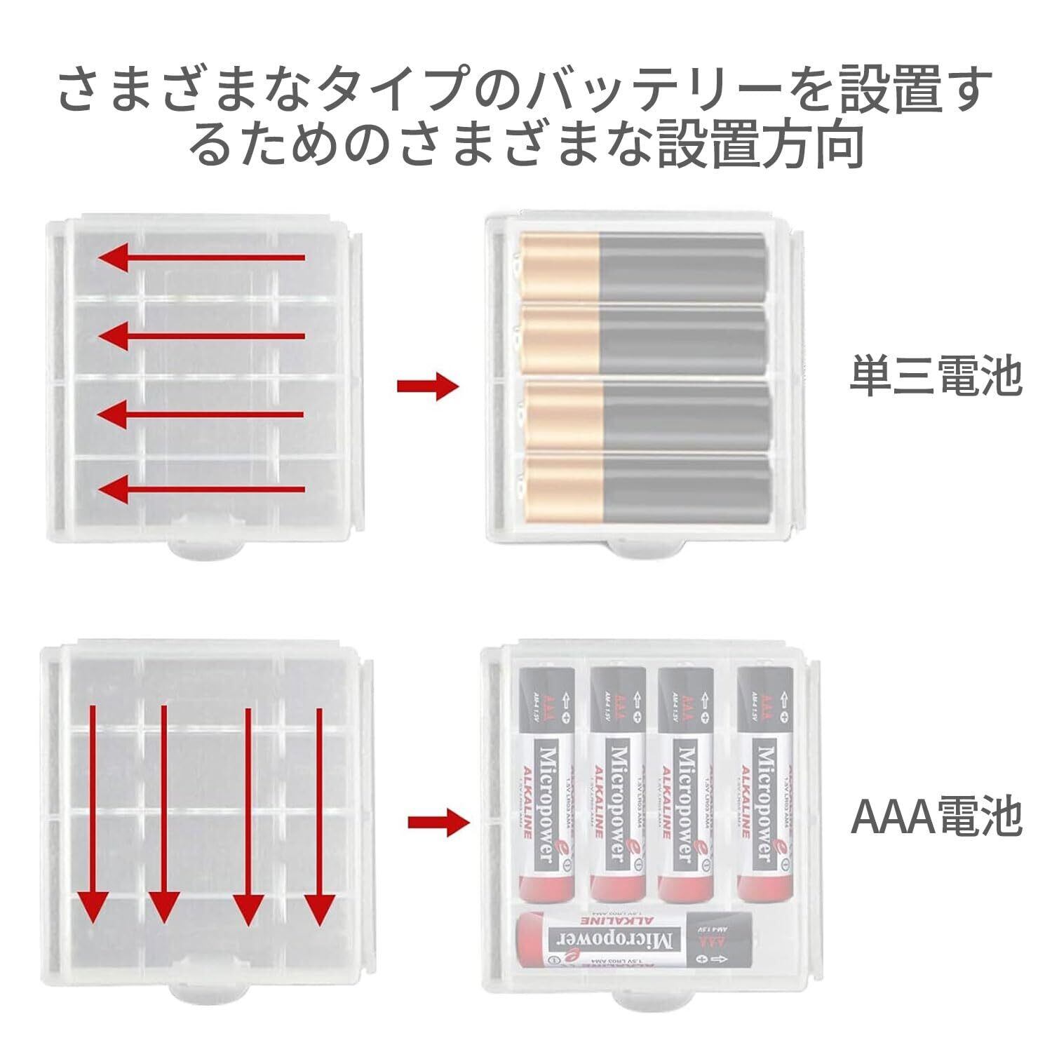 電池ケース 4個入り 単三および単四電池に対応 乾電池 充電池収納ボックス コンパートメント オーガナイザー ボックス ポータブル 便利