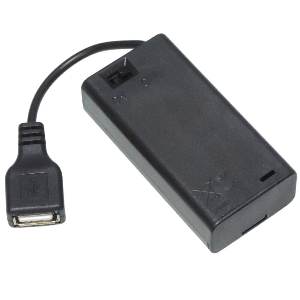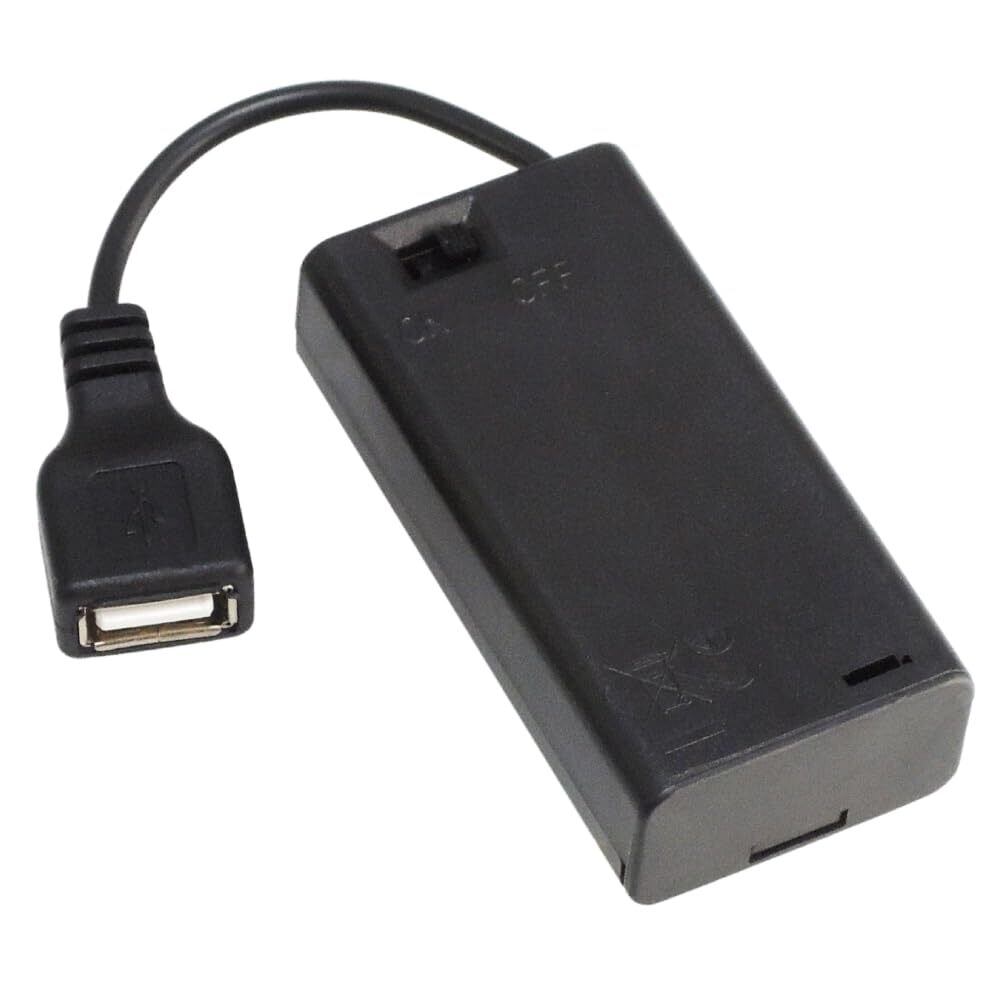 KAUMO 電池ボックス USBケーブル出力 (単3電池×2 直列 3V) ON/OFFスイッチ付き 電池ケース