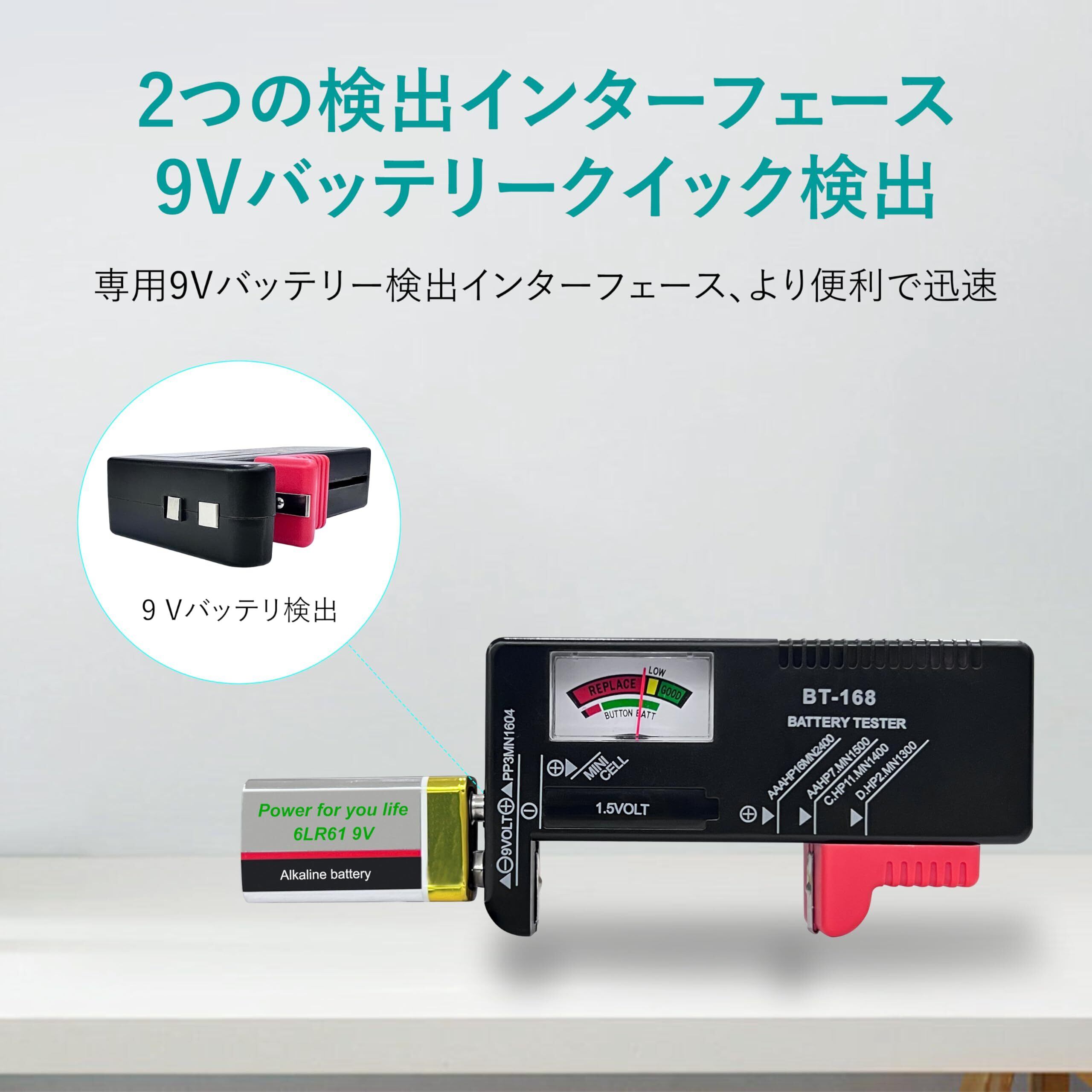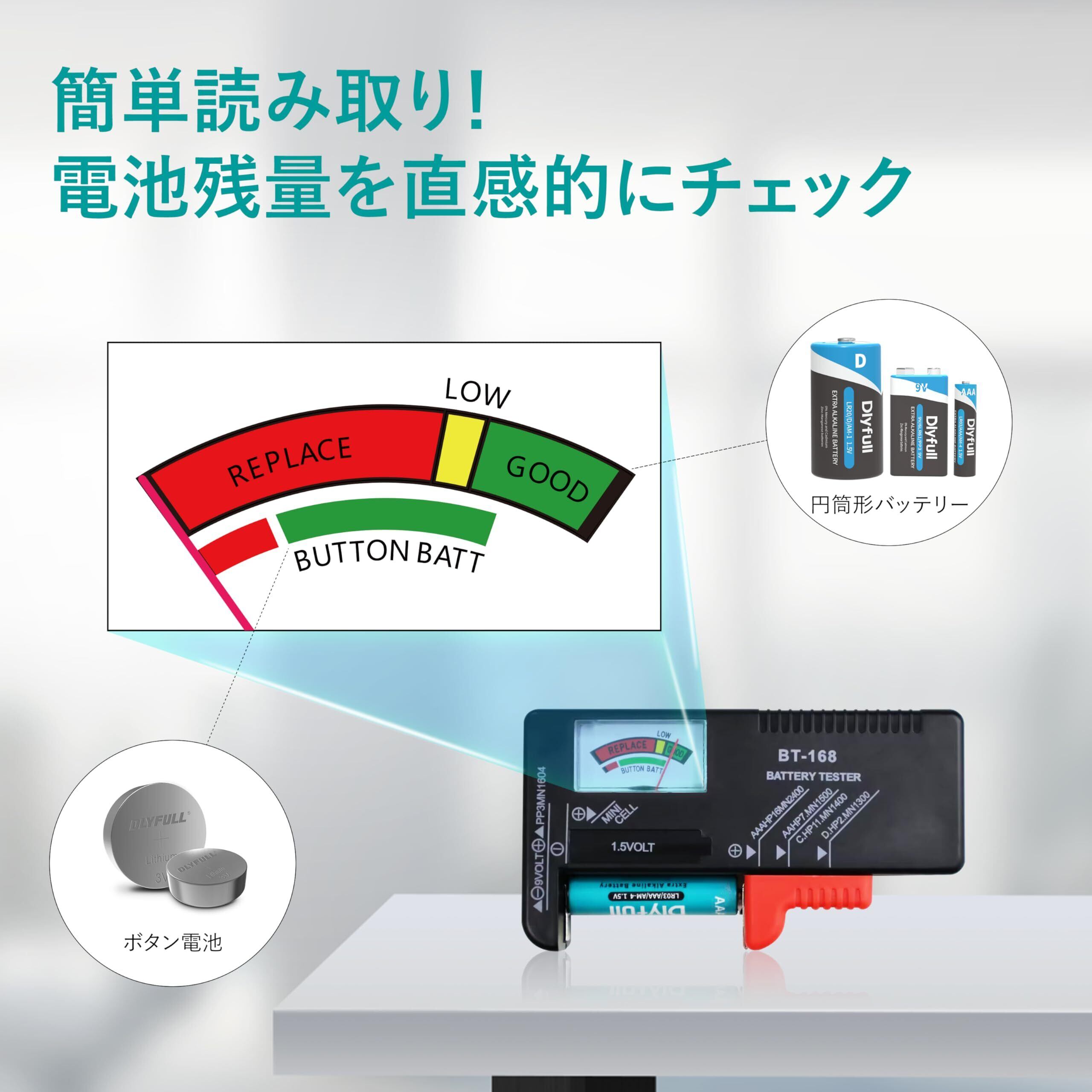 Dlyfull 電池チェッカー 単三 乾電池バッテリーチェッカー、 単1 単2 単3 単4 単5 9V型アルカリ乾電池に対応、1.5V/LRボタン形 電池残量チェッカー 電源不要 乾電池残量測定簡単 B1L B1T (BT-168)