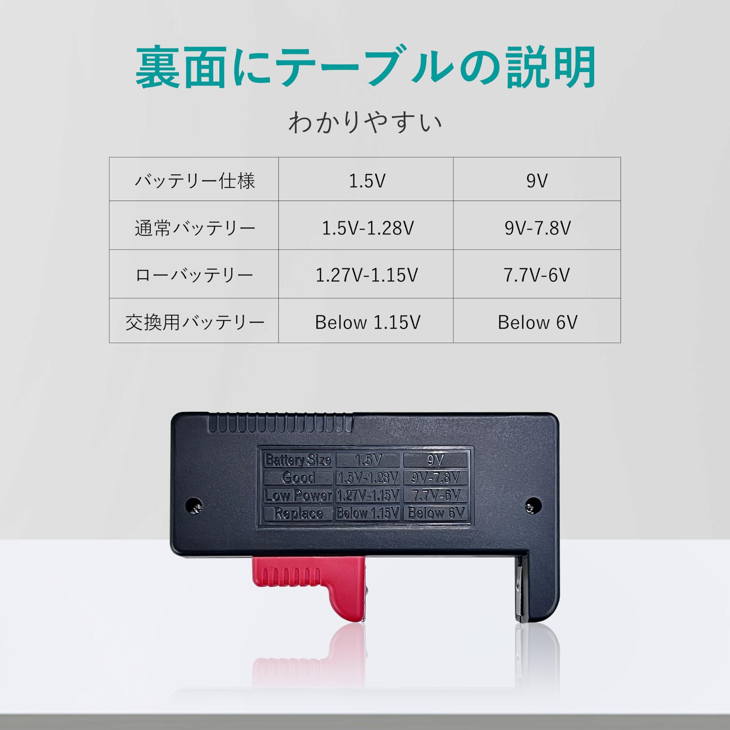 【電池もコンセントも不要!便利に倍増!】バッテリーチェッカーなら、電池もコンセントも必要ありません!しかも、長期間にわたって使用できるので、経済的で環境にも優しいです。電池もコンセントも不要!電池 チェッカーがあれば、「玩具やリモコン、時計など、さまざまな電池」のチェックがとても簡単です。家庭内のあらゆるシーンで活躍します!また、長寿命設計なので、長くご愛用いただけます。
