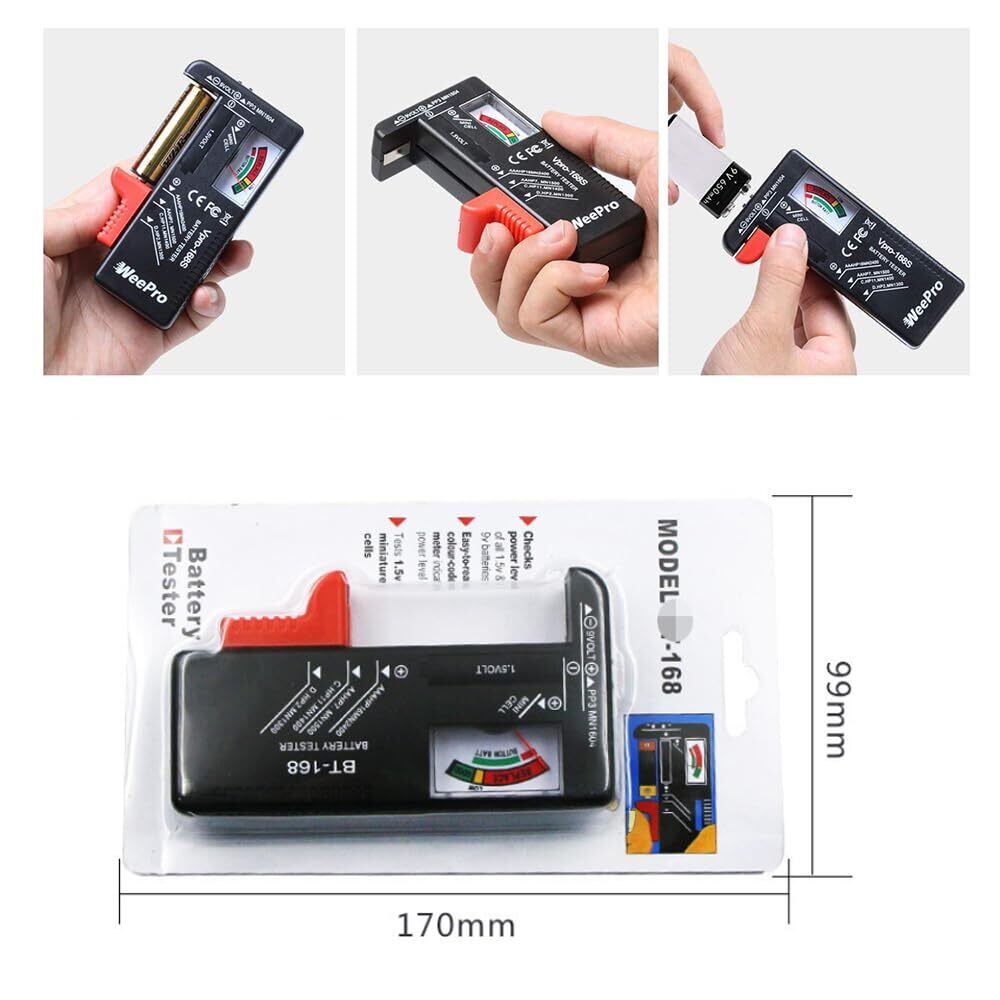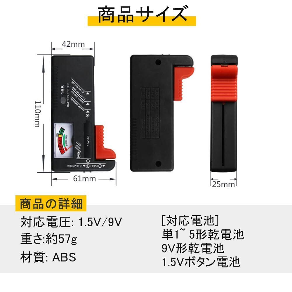 電池チェッカー バッテリーテスター 単1~5形 乾電池残量測定器 9V型アルカリ乾電池に対応 1.5V/LRボタン形 電源不要の電池チェッカー(2個入)
