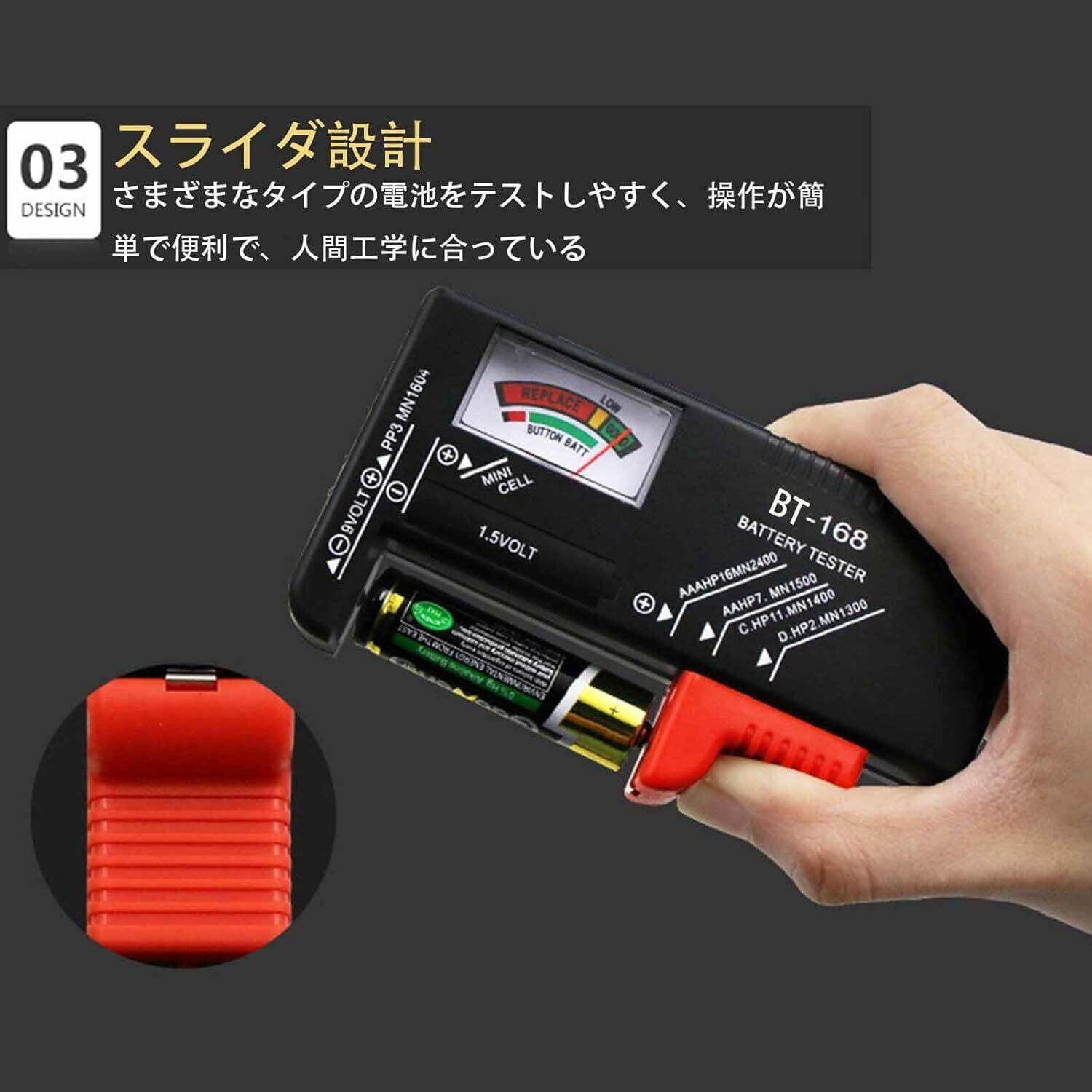 Parishop バッテリーテスター 電池チェッカー 単三 乾電池バッテリーチェッカー、 単1 単2 単3 単4 単5 9V型アルカリ乾電池に対応、1.5V/LRボタン形 電池残量チェッカー 電源不要 乾電池残量測定簡単 乾電池やボタン電池の残量チェック BT-168