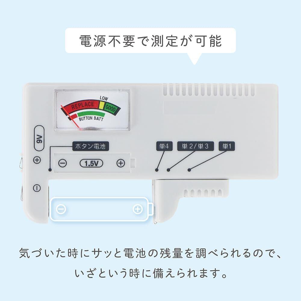 電源不要で、電池をセットするだけで残量目安がわかる電池チェッカーです。