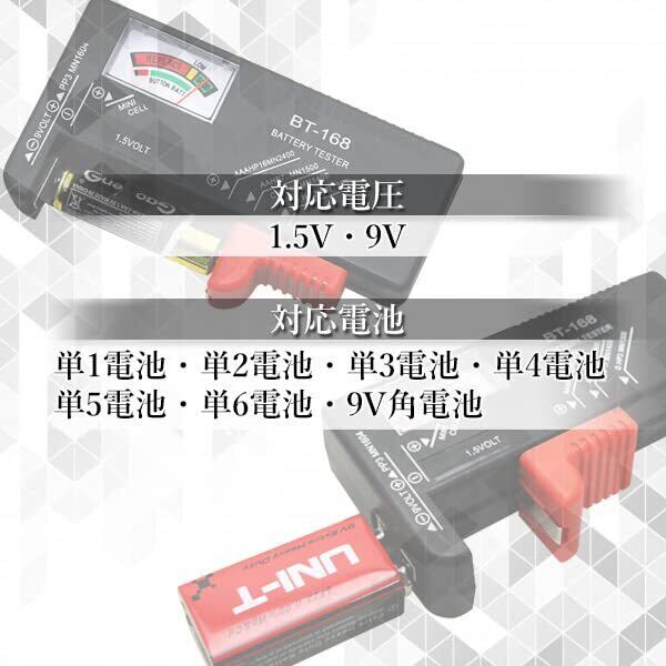 バッテリー チェッカー 乾電池 電池チェッカー バッテリーテスター 角型電離 アナログ式 測定器 計測 電池残量 小型