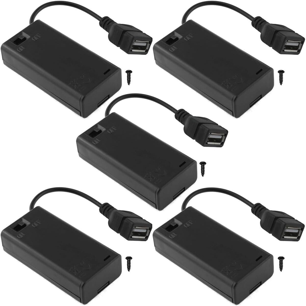 5個 2 AA バッテリーボックスホルダー USBメスケーブルソケット付き 2 AA電源バッテリーケースボックス オン/オフスイッチ付き ミニファンライト、おもちゃのRCカー、LEDストリップ用