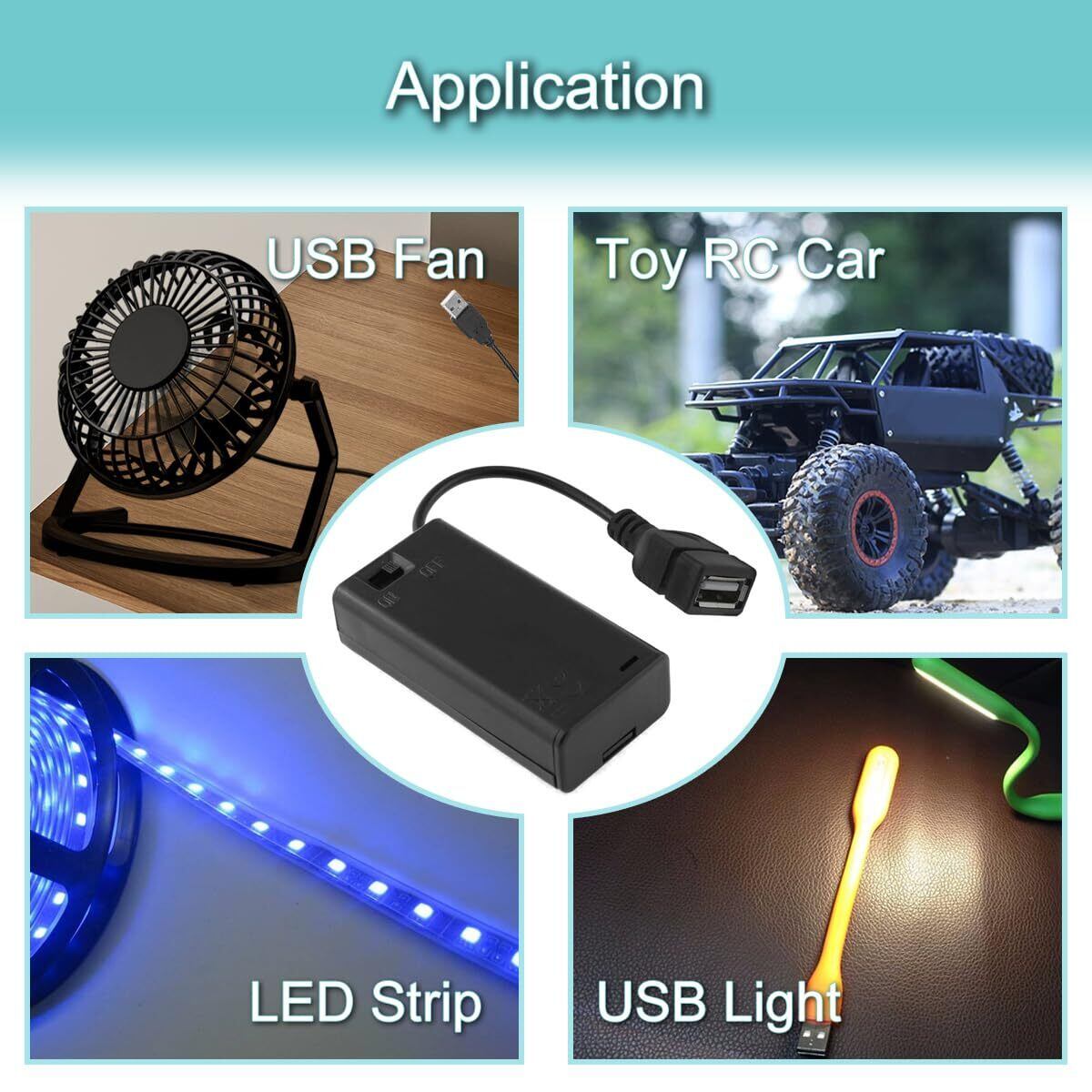 [用途] 2 AAバッテリーボックスホルダーは、ミニUSBファン/ライト、おもちゃのRCカー、LEDストリップなどに幅広く使用できます。