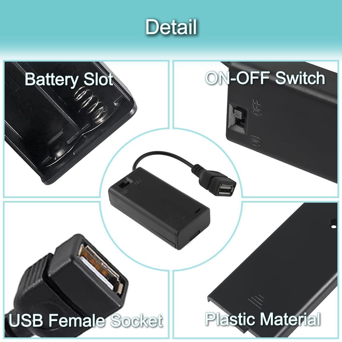 [特徴] 2 AAバッテリーボックスホルダーは軽量でポータブルなので、5V DCデバイスに電源が必要なときに持ち運ぶことができます。