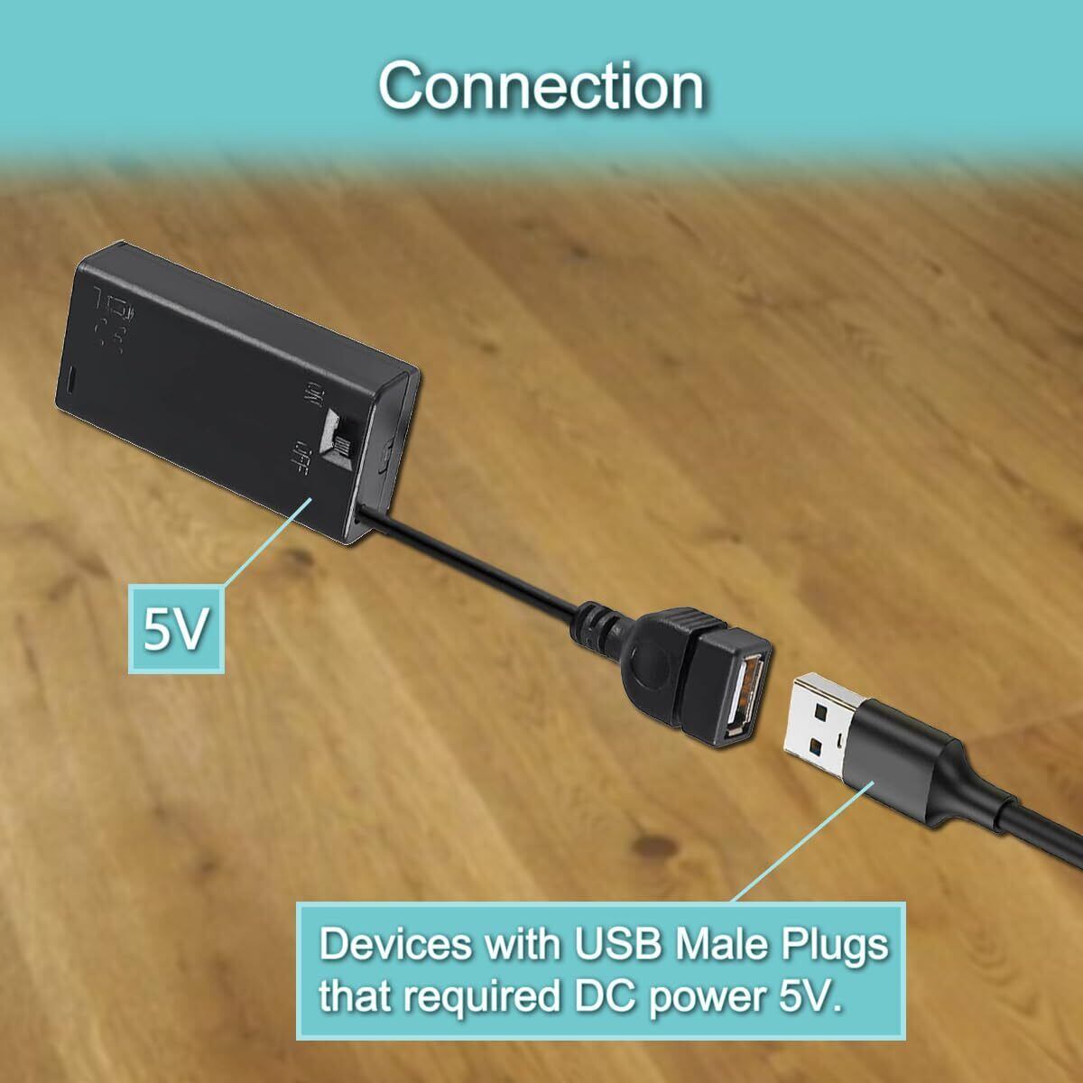 [接続方法] ボックスは5V DC電源を供給でき、オン/オフスイッチで制御されます。5V電源を必要とするデバイスのUSBオスコネクタを電源ボックスのUSBメスコネクタに接続するだけです。