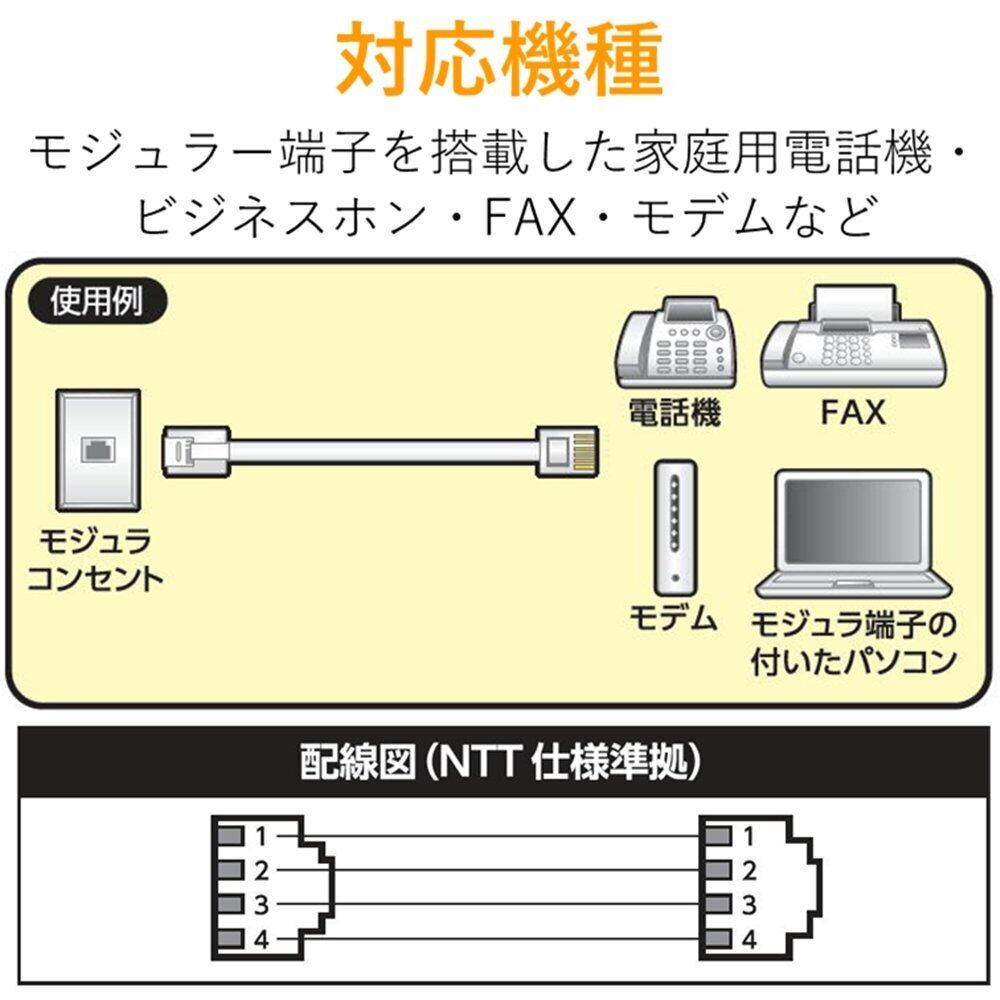 ■NTT仕様準拠の6極4芯タイプです。6極2芯の機器にも使用可能です。※NTT仕様に準拠していない機器には使用できません。