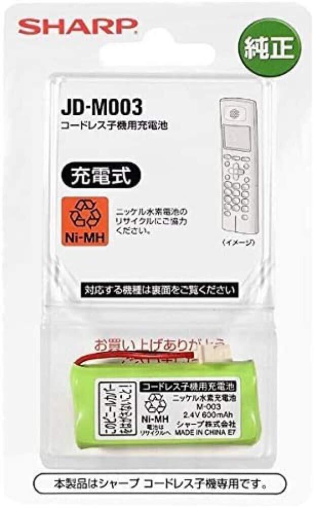 シャープ製電話機の純正充電池。対象商品は下記参照。