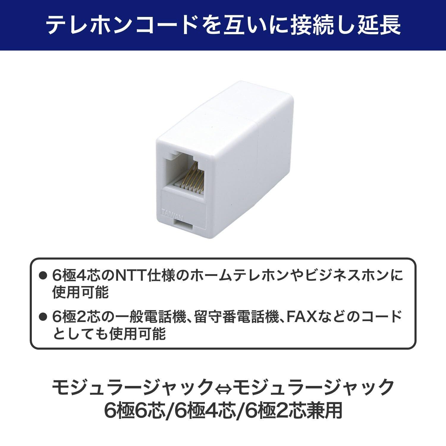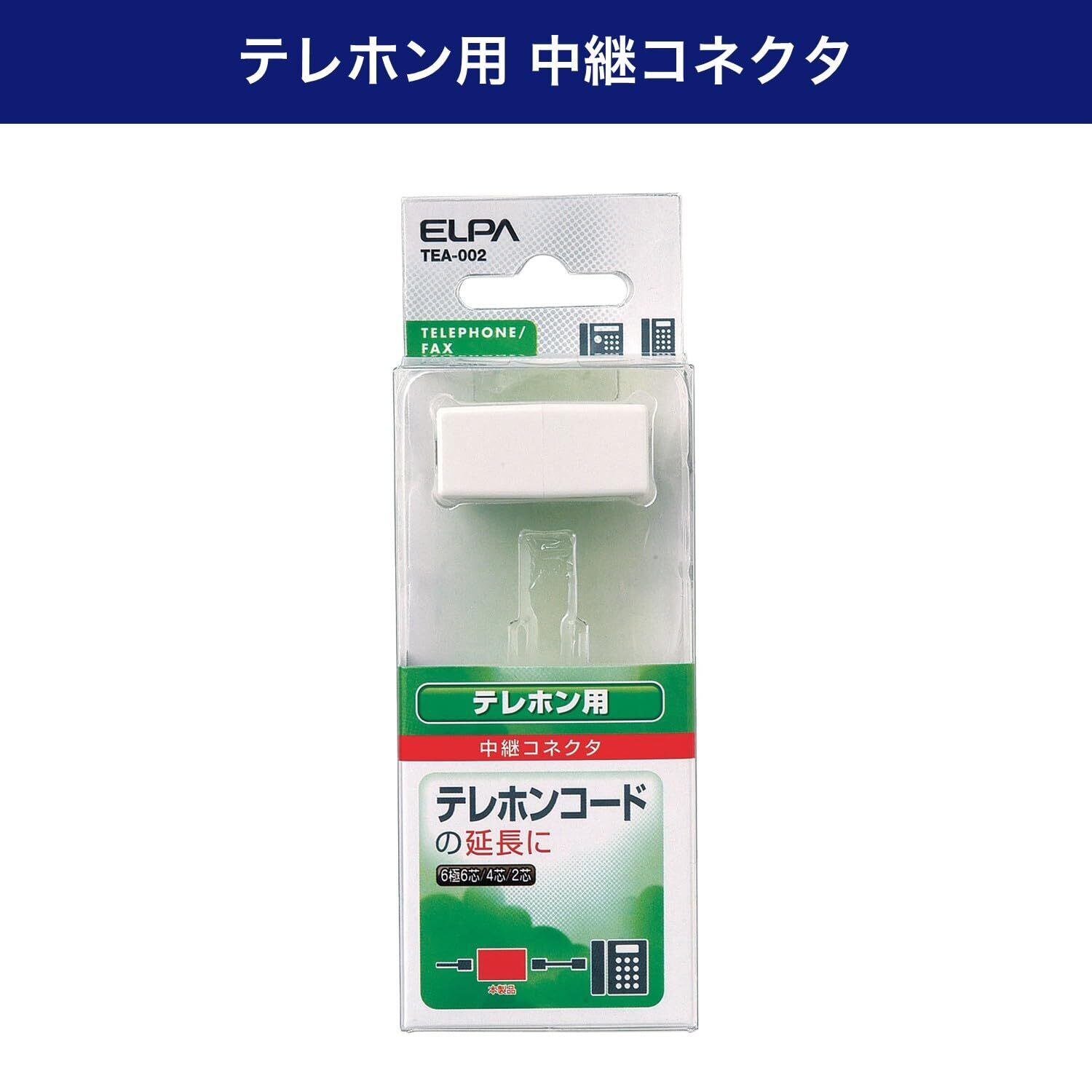 エルパ(ELPA) 中継コネクター 延長 配線 電話線 モジュラージャック⇔モジュラージャック 6極6芯/6極4芯/6極2芯兼用 TEA-002