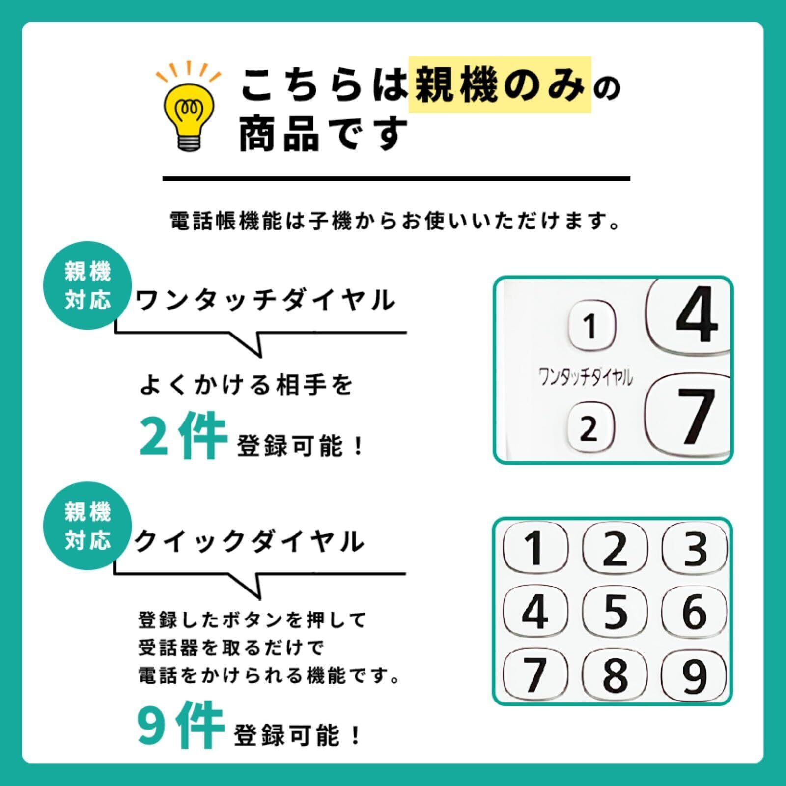 コードレス子機は付属しておりません。電話帳機能はご利用いただけません。ご注意ください。 また、モジュラーケーブル(電話線)も付属しておりません。別途ご用意ください。