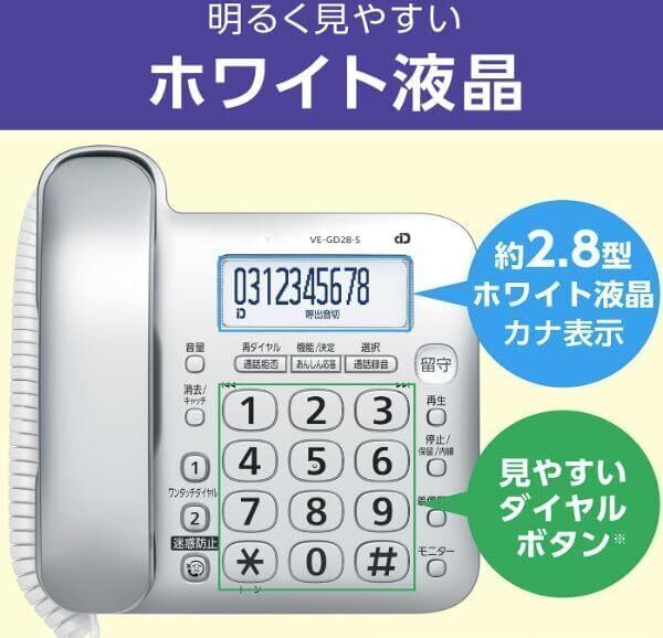 パナンニック コード付き デジタル電話機 VE-GD28DL-S (親機のみ・子機無し) 迷惑防止機能付き シルバー & NEXURISE オリジナル 振り込め詐欺撃退シール