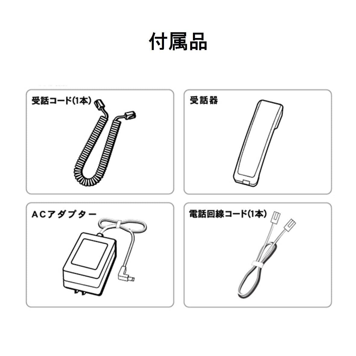 付属品:受話コード(30cm)/回線コード(200cm)/ACアダプタ ダイヤル方式:プッシュ回線/ダイヤル回線(10PPS/20PPS)