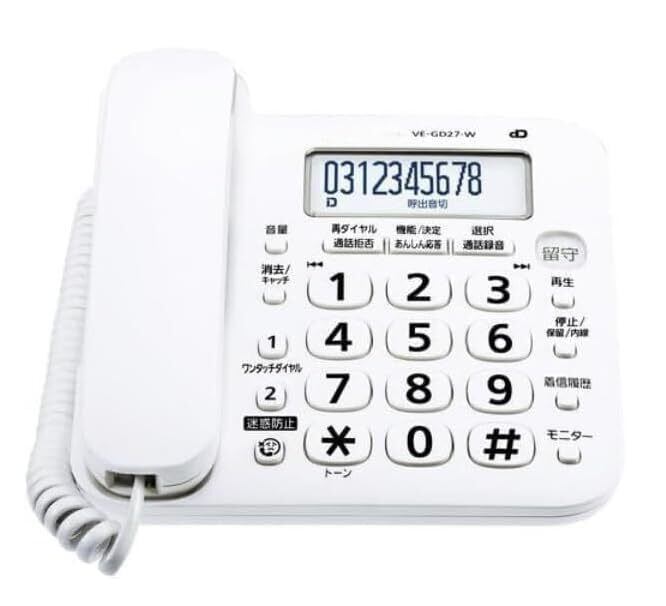 コード付き デジタル電話機 VE-GD27DL-W (親機のみ・子機無し) 迷惑電話対策機能搭載 ホワイト & NEXURISE オリジナル 振り込め詐欺撃退シール