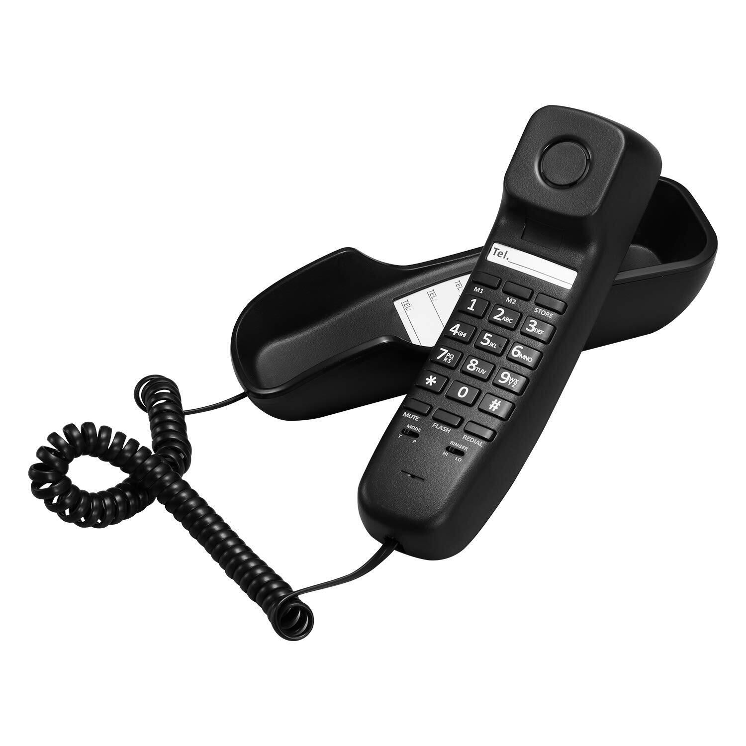 Trimline コード付き電話機、シンプル、ハンディ、オフィス/ビジネス/家庭用電話機、ワンタッチダイヤル機能、リダイヤル機能、ダイヤル回線/プッシュ回線(10PPSのみ)、壁掛け式(ブラック)