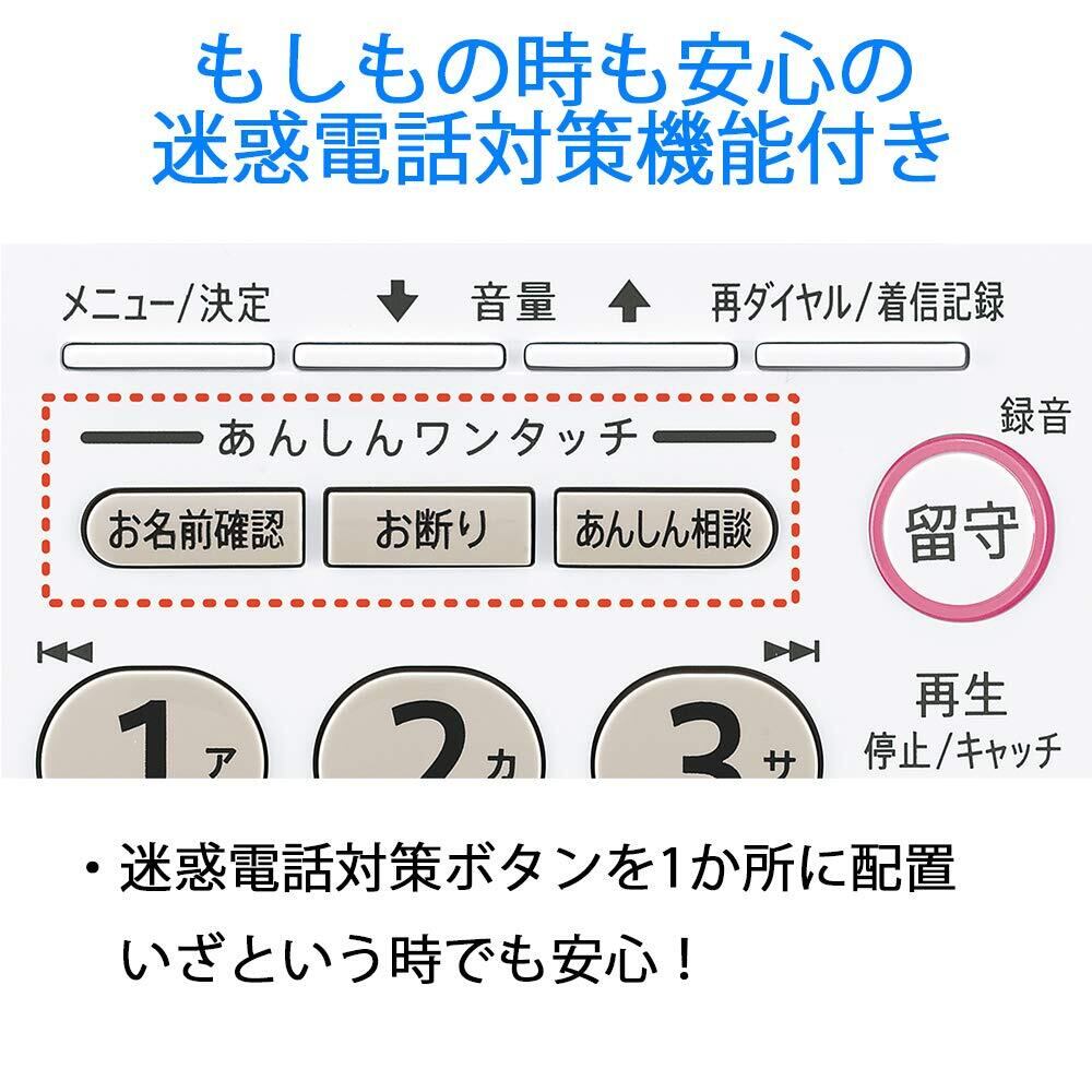・「あんしん相談」 不審電話や勧誘電話などを受けた後でボタンを押せば、あらかじめ登録した相談先にワンタッチで電話をかけられます。